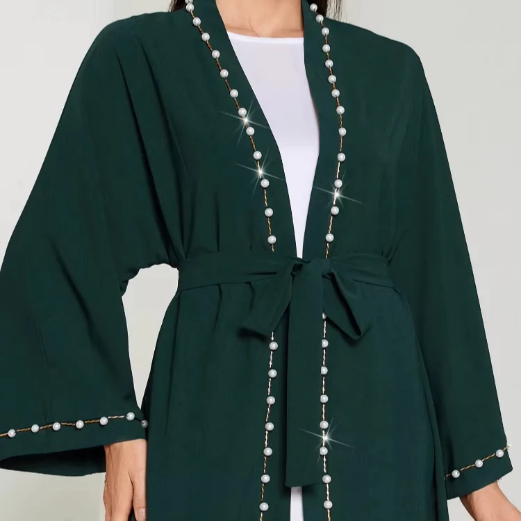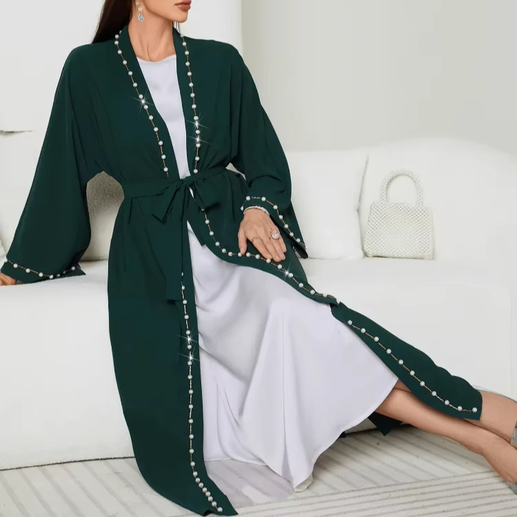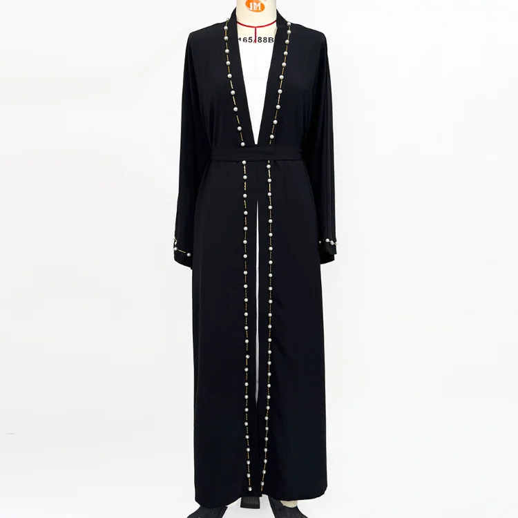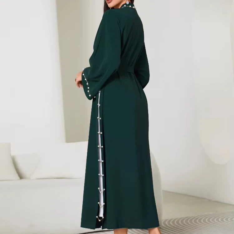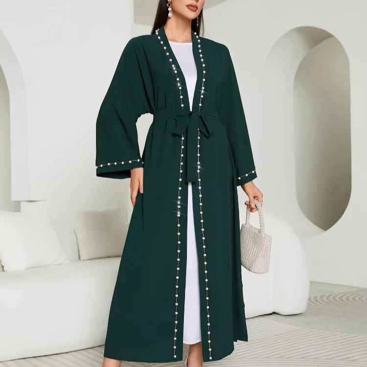 Wholesale New Fashion Muslim Robe Vintage Beaded Long Outer Belt Women's Cardigan Loose Dress