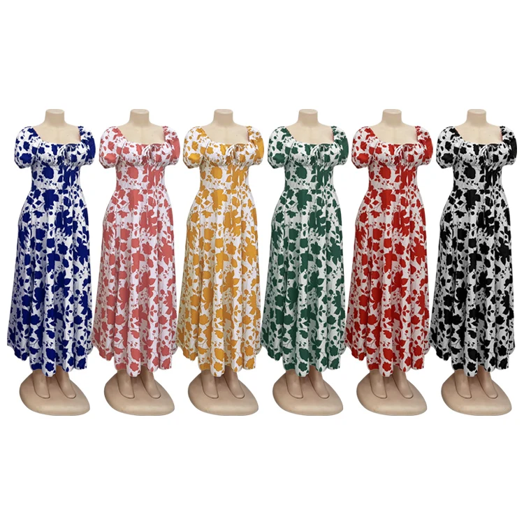 Wholesale Summer New Fashionable Casual Printed Girls' Short Sleeved Princess Jumpsuit Long Skirt
