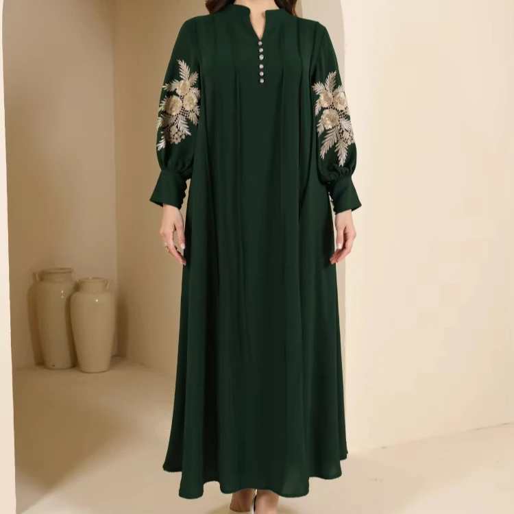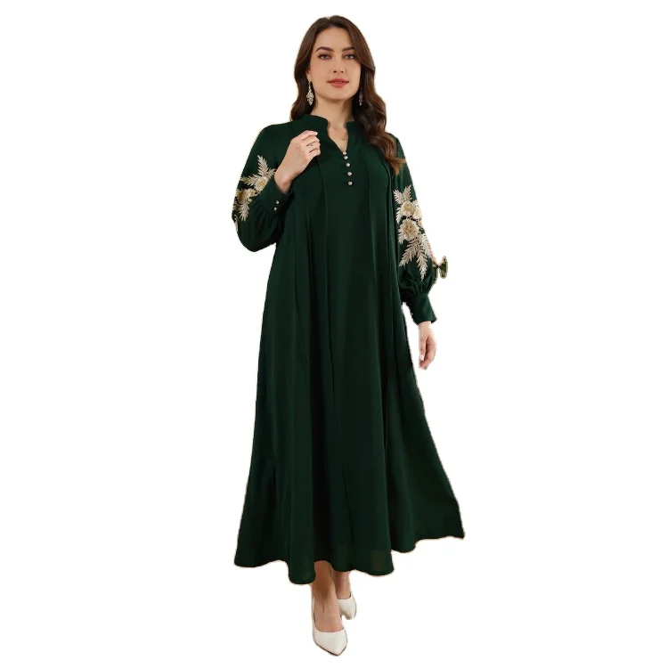 Wholesale New Middle Eastern Muslim Plus Size Robe Embroidery Abaya Ladies Casual Loose Dress