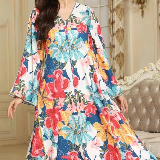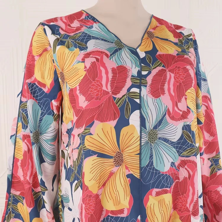 Wholesale Middle East Plus Size Muslim Robe Women Print Women Abaya Dress Long Sleeve Dress
