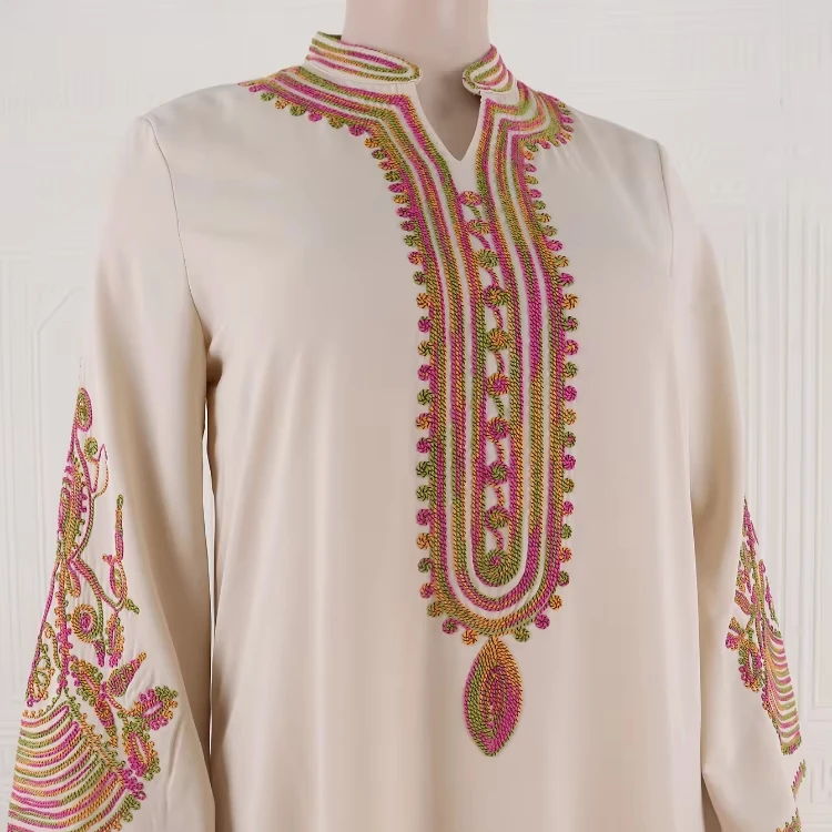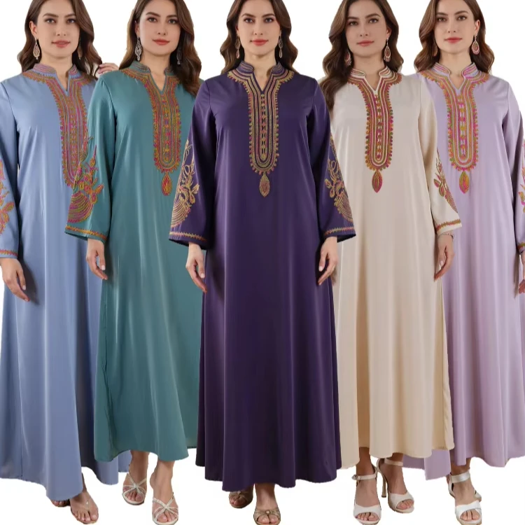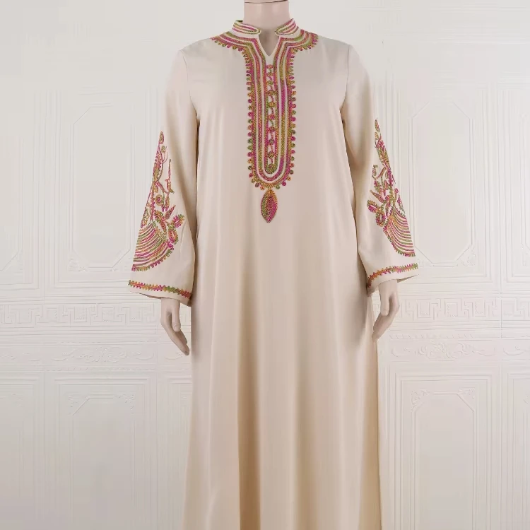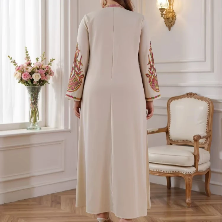 Middle East Muslim Embroidered Plus Size Women Rope Embroidered Robe Fashion Long Sleeve Dress