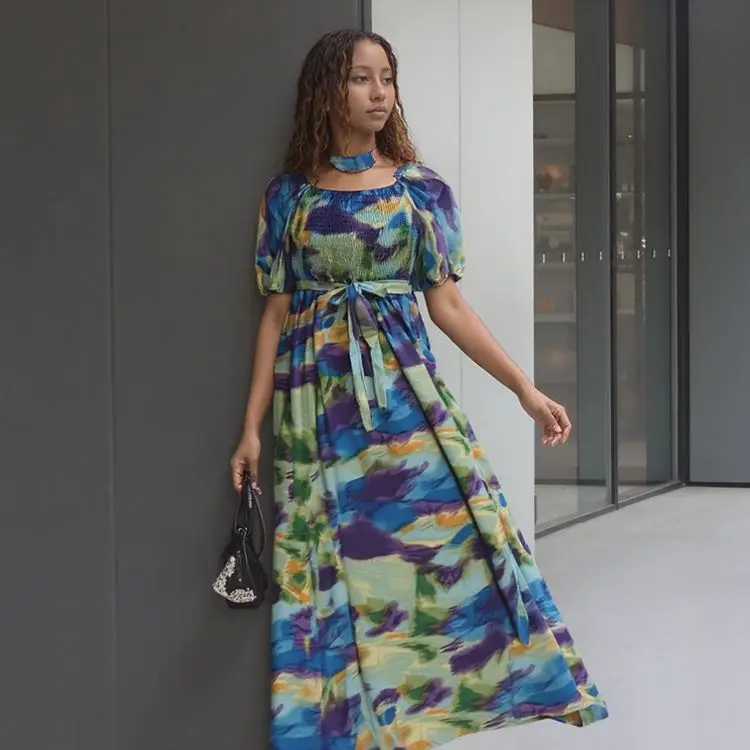Women's New Fashion Slim Short-sleeved Europe and the United States Summer Printing Sexy Casual Dresses