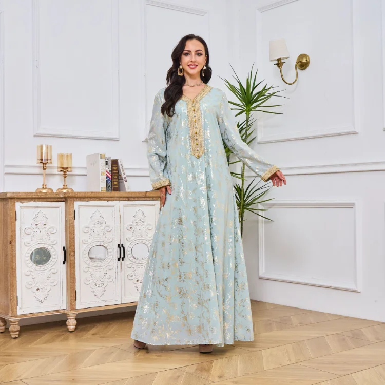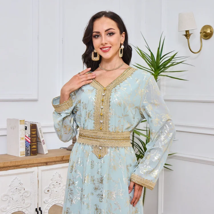Wholesale Middle East Europe and America Muslim Women's Robe Hot Gold Printed Fashion Dresses