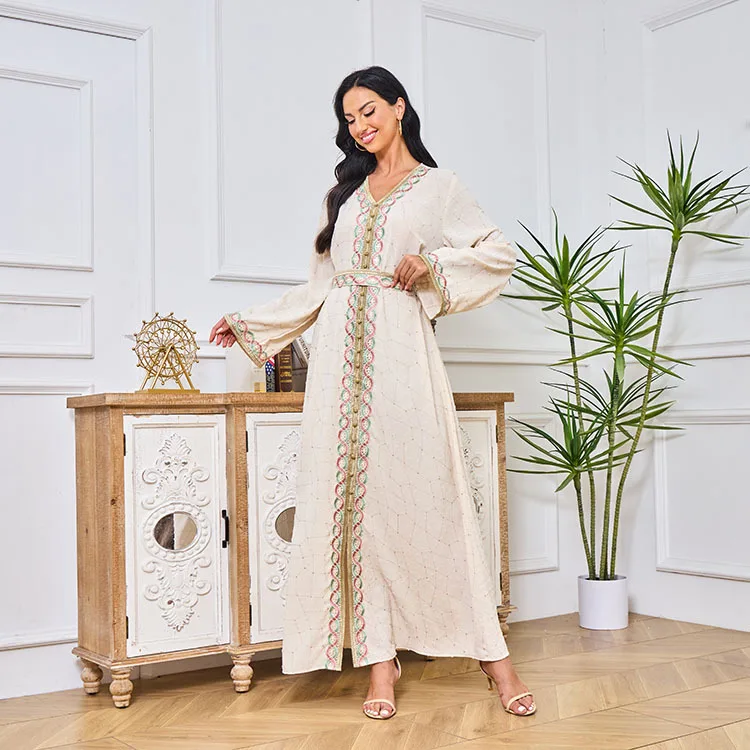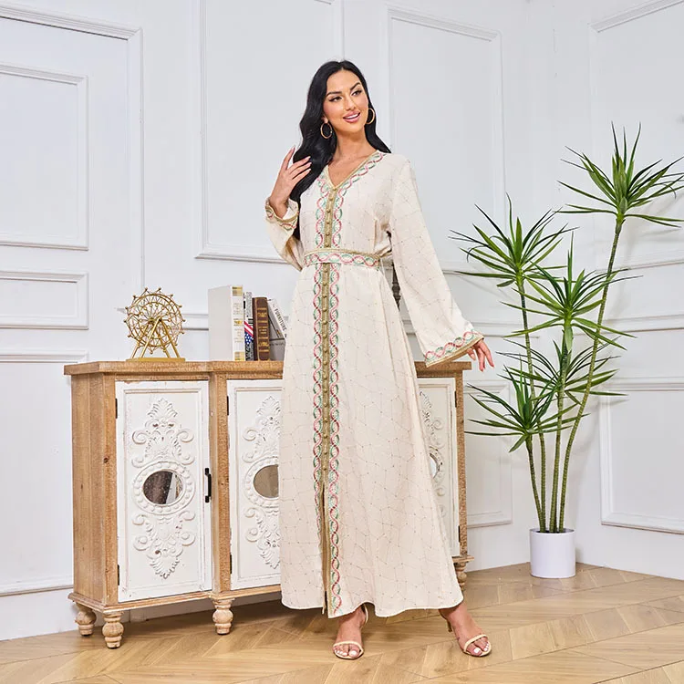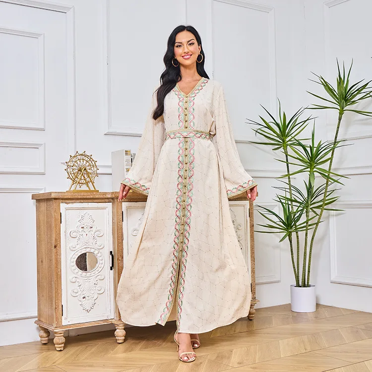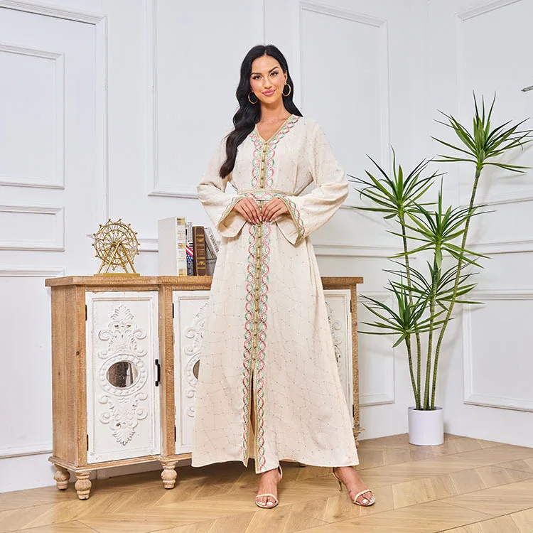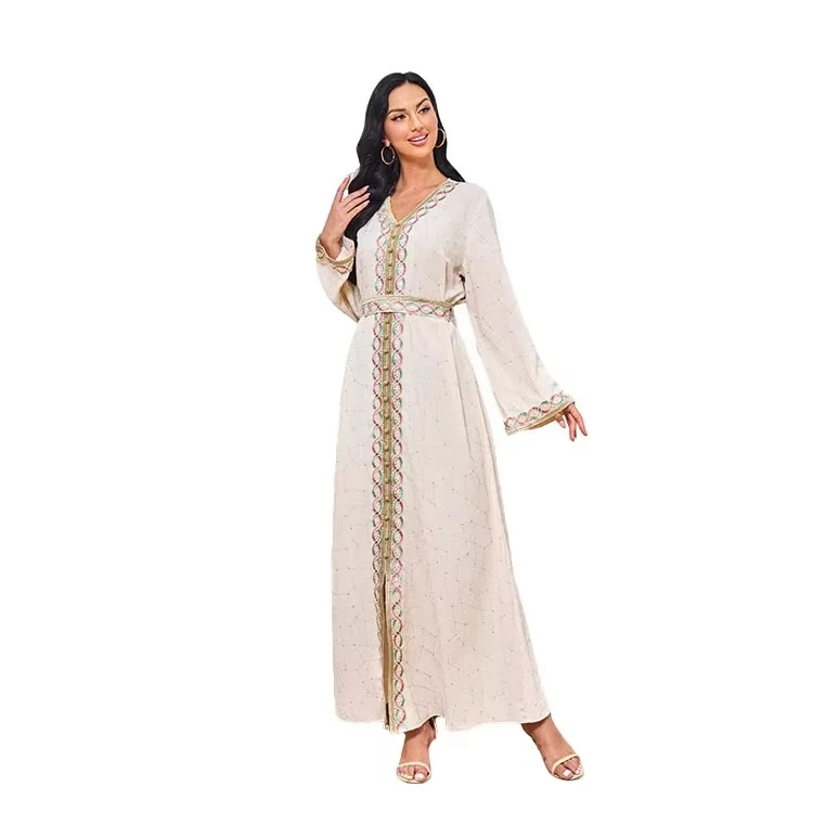 Wholesale Europe and America Middle East Muslim Women's Robe Embroidery Fashion Long Sleeve Dresses