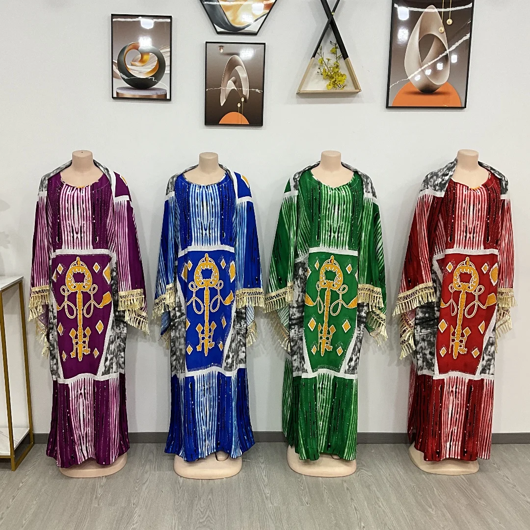 2026 New Fashion Beaded Sequins Tile Printed Loose Casual Headband African Women Summer Dress Headscarf Shawl