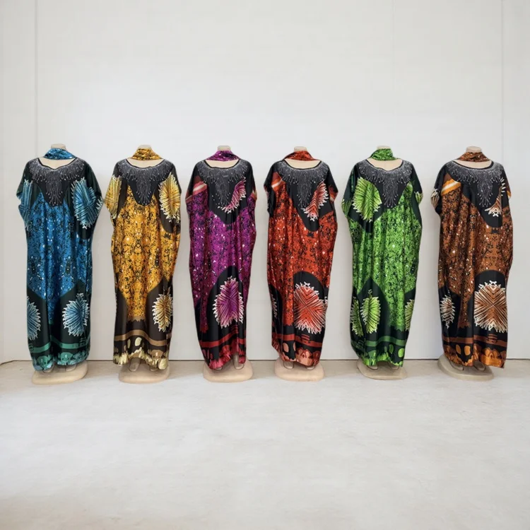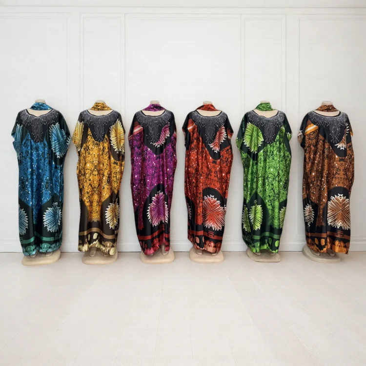 Wholesale New Fashion Loose Casual Print African Plus Size Muslim Robe Dress