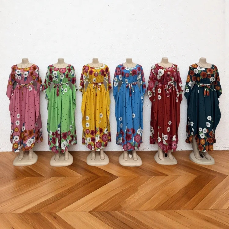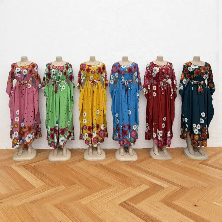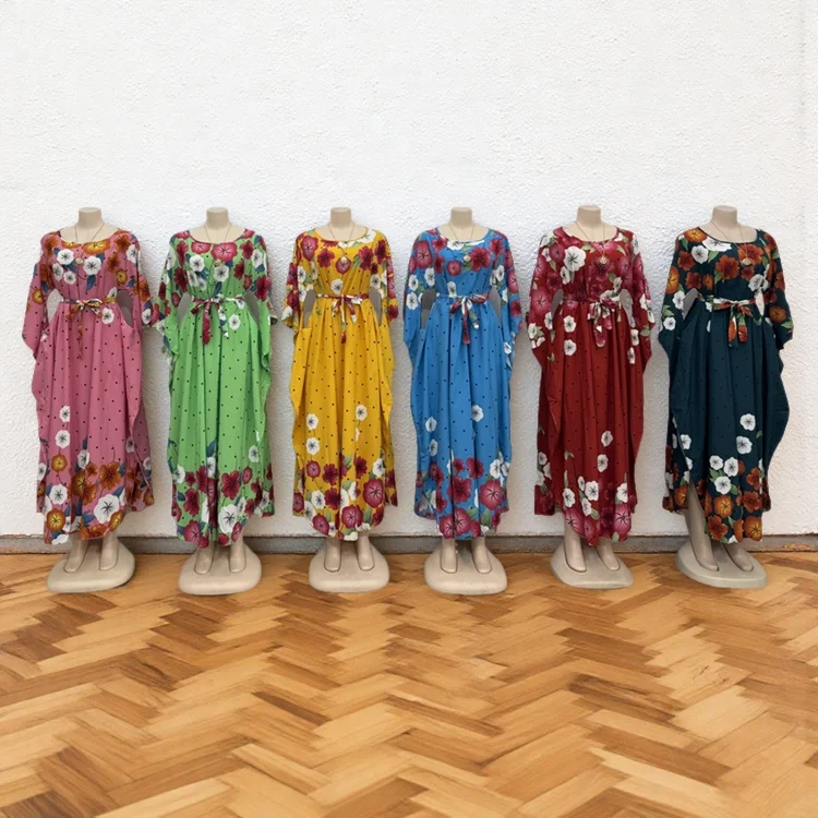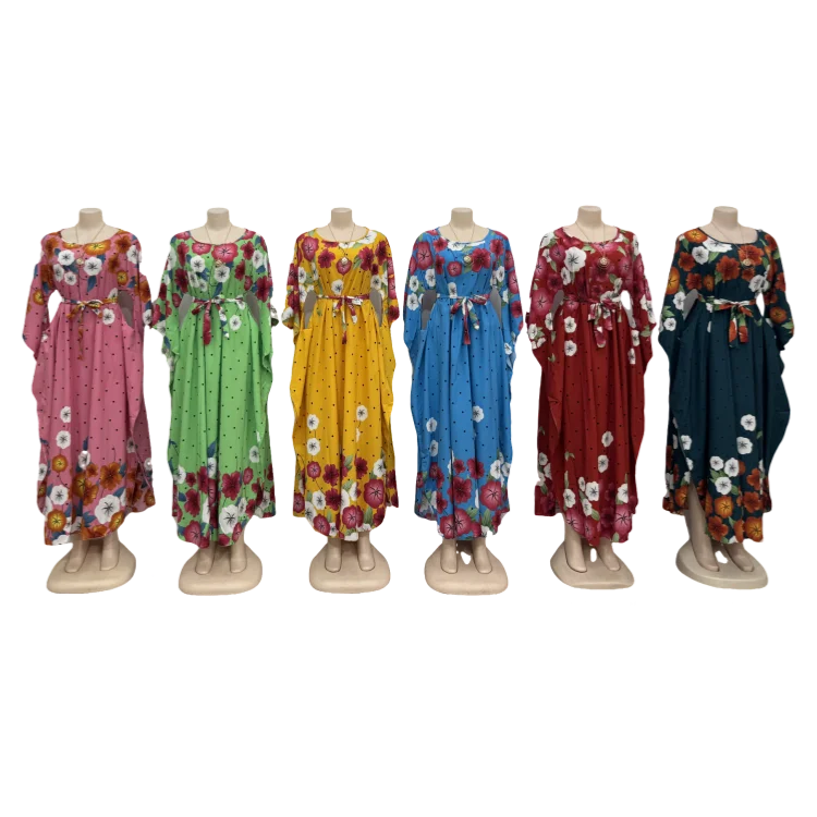 Summer Vintage Round Neck Belted Casual Plus Size Women's Long Sleeve Printed Dress