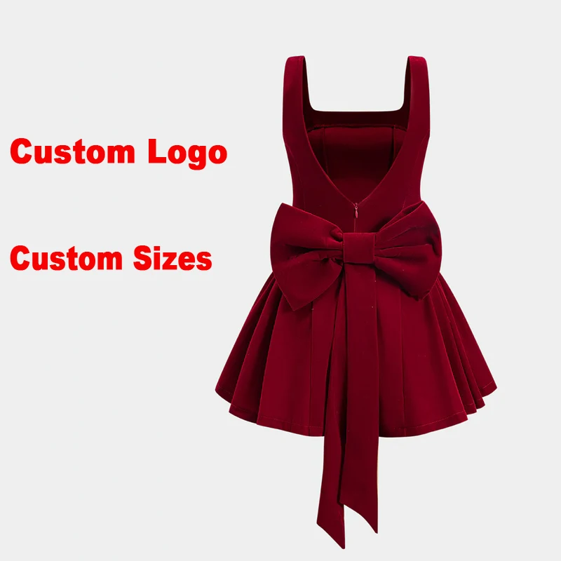 Burgundy Velvet Sleeveless Square Neck Leopard Print Mini Dress Back Large Bow Flared Skirt Fitted Waist Party Date Cocktail