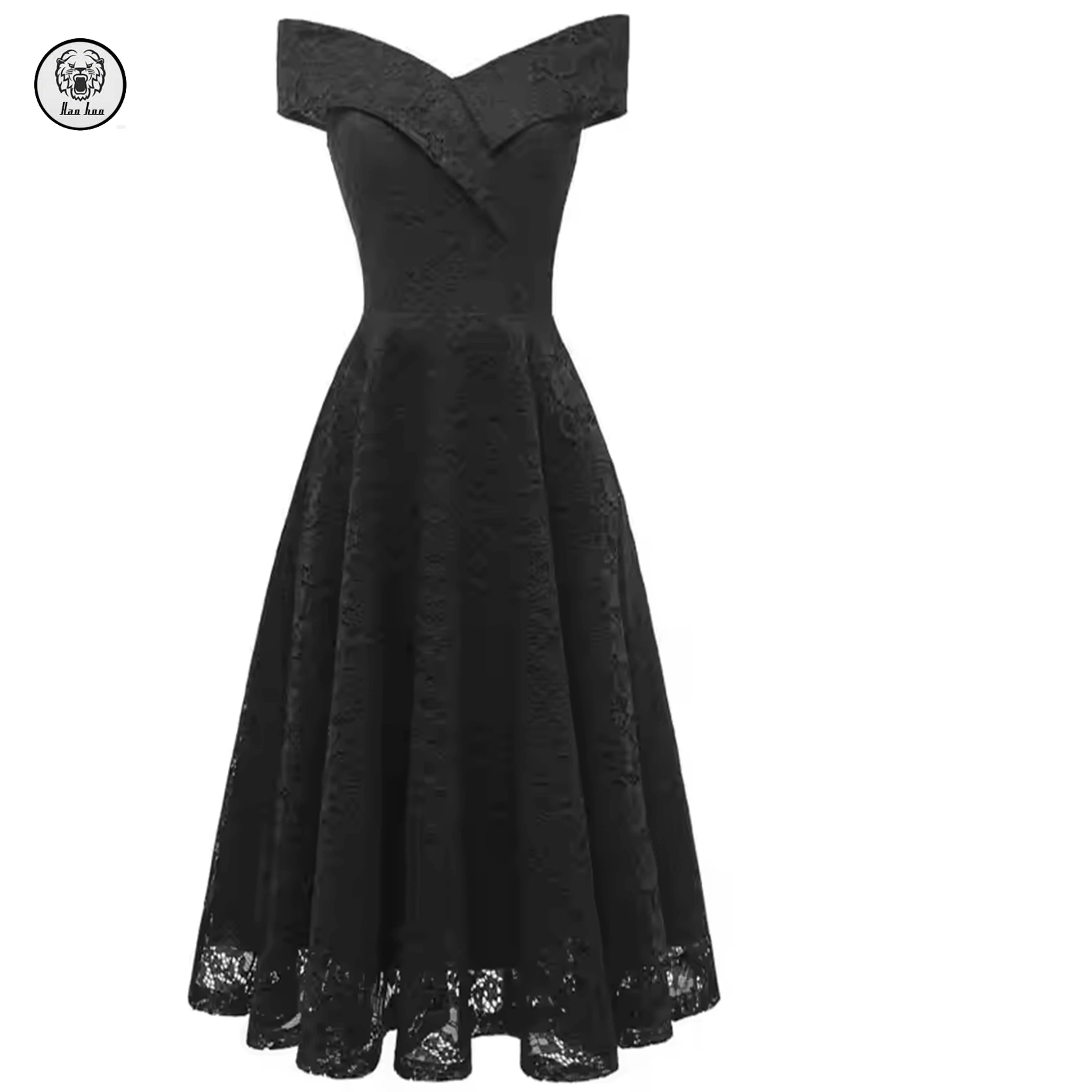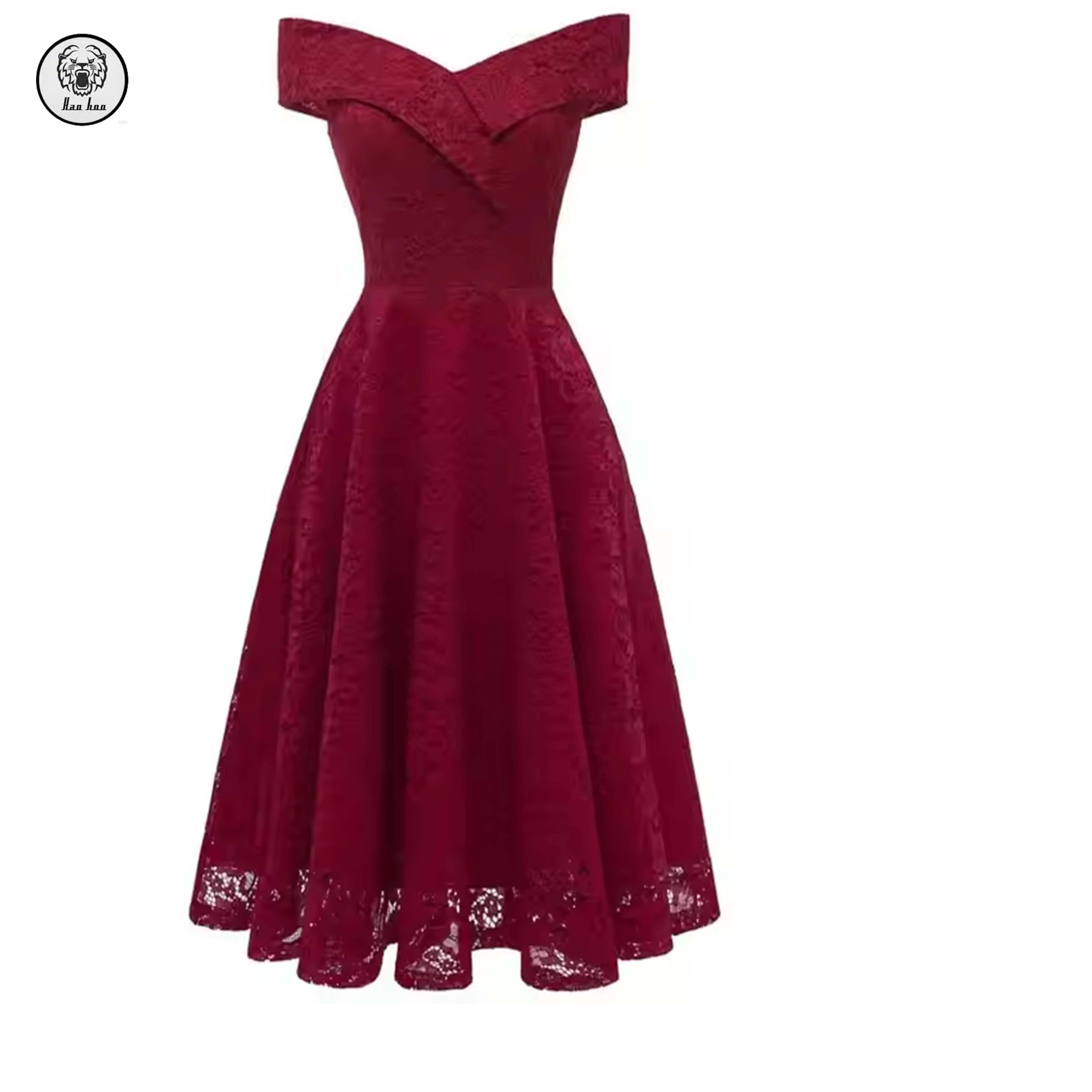 2026 NEW Custom Floral Lace Elegant Ladies Off-Shoulder Flared Maxi Length Dress for Special Occasions Club Parties Logo Back