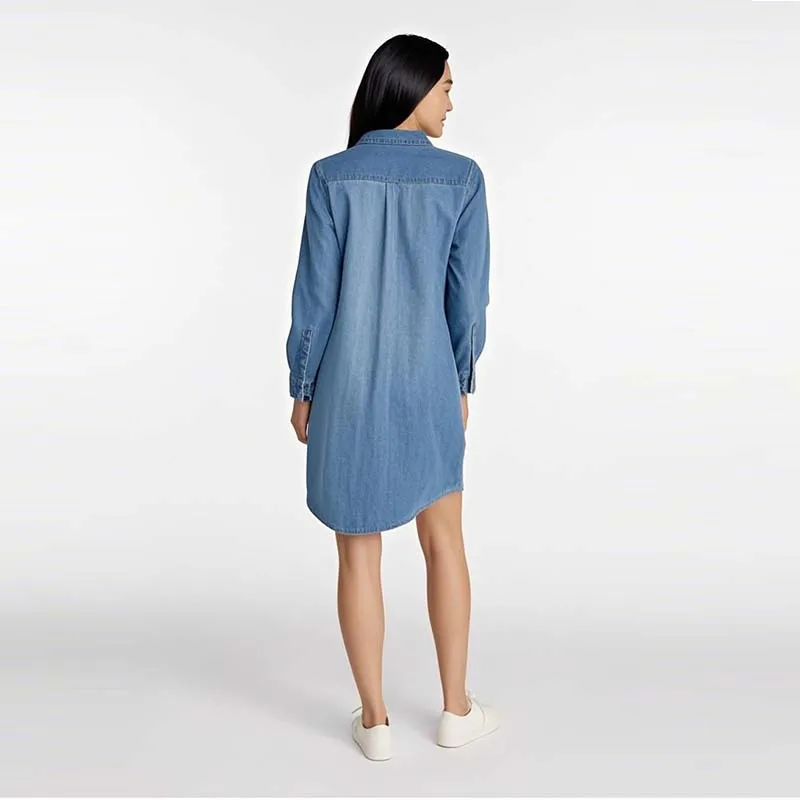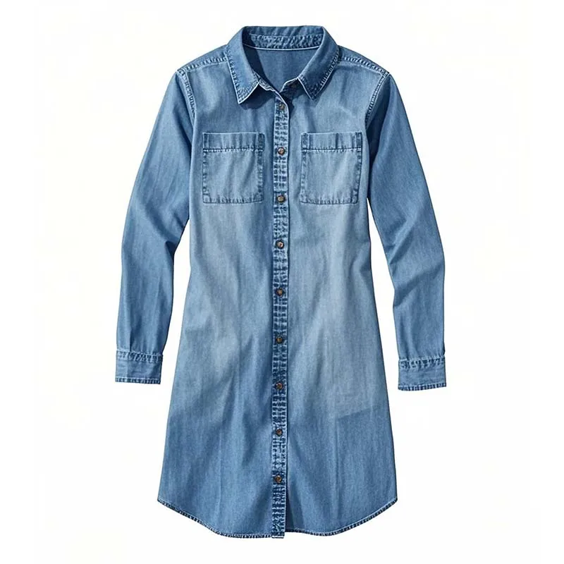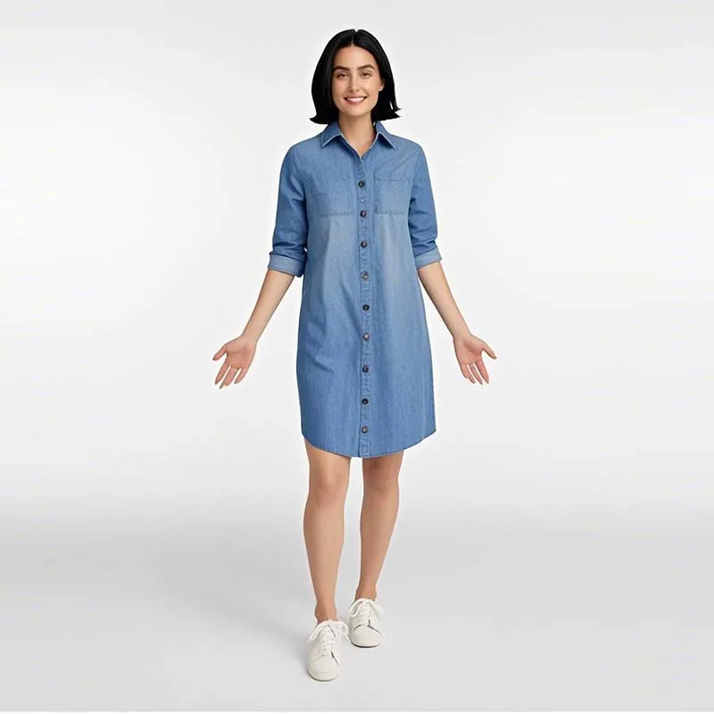 Factory Wholesale Elegant Casual Women's 3/4 Sleeve Summer Apparel Washed Denim Dress Turn-down Collar Sexy Bodycon Dress
