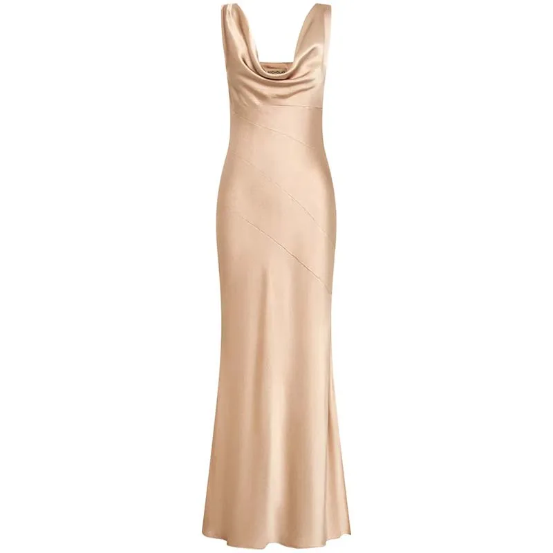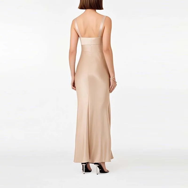 Wholesale Elegant Sleeveless Maxi Dress for Women Formal Cocktail Party Attire Built-In Washable Worsted Natural Casual Dress