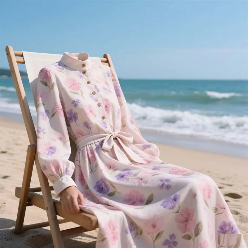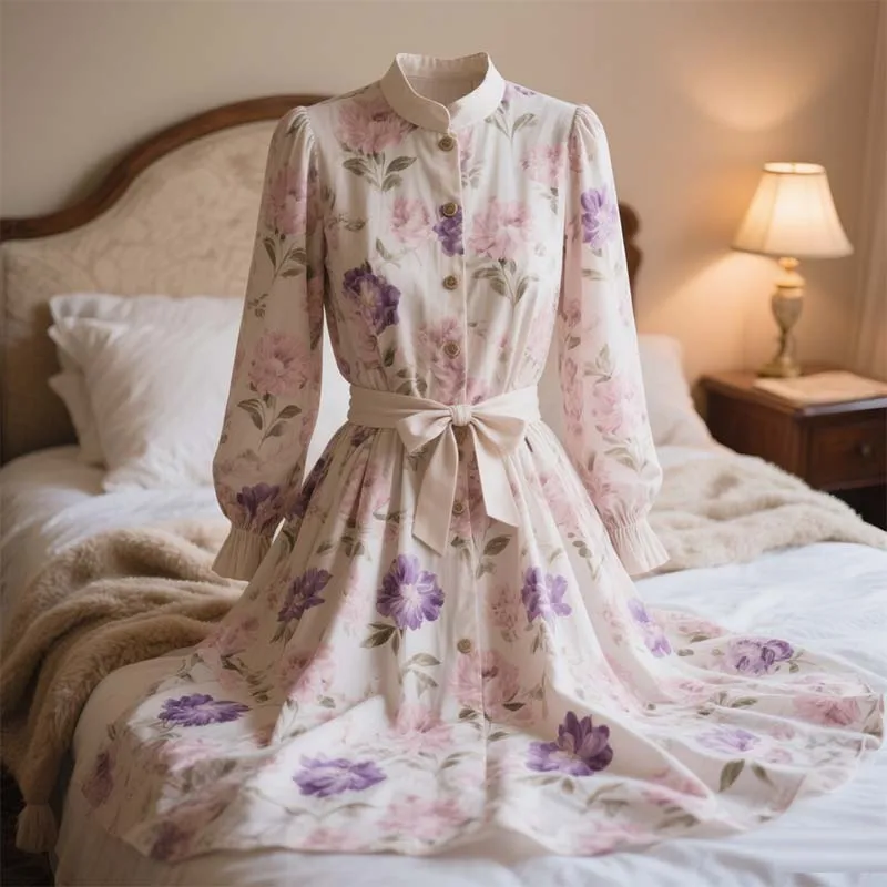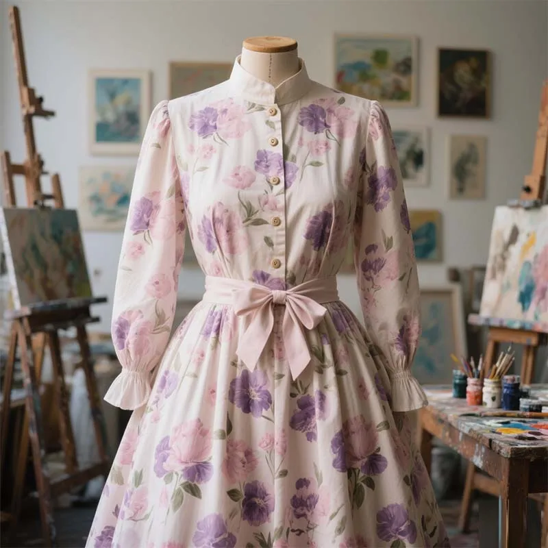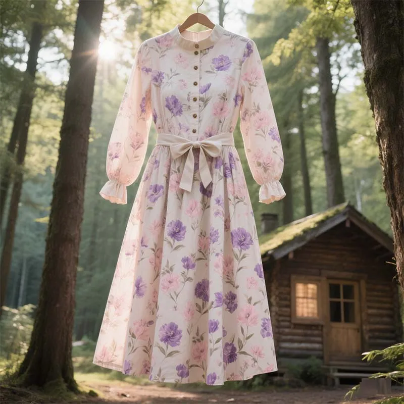 2026 New Design Casual Floral Printing Maxi Dress Vintage Sustainable Empire Waist O Neck Dress for Daily Party Use