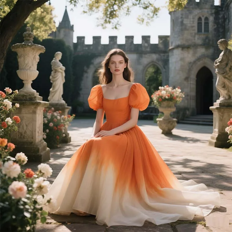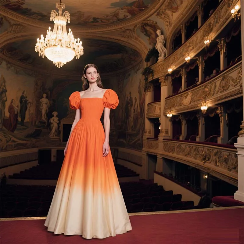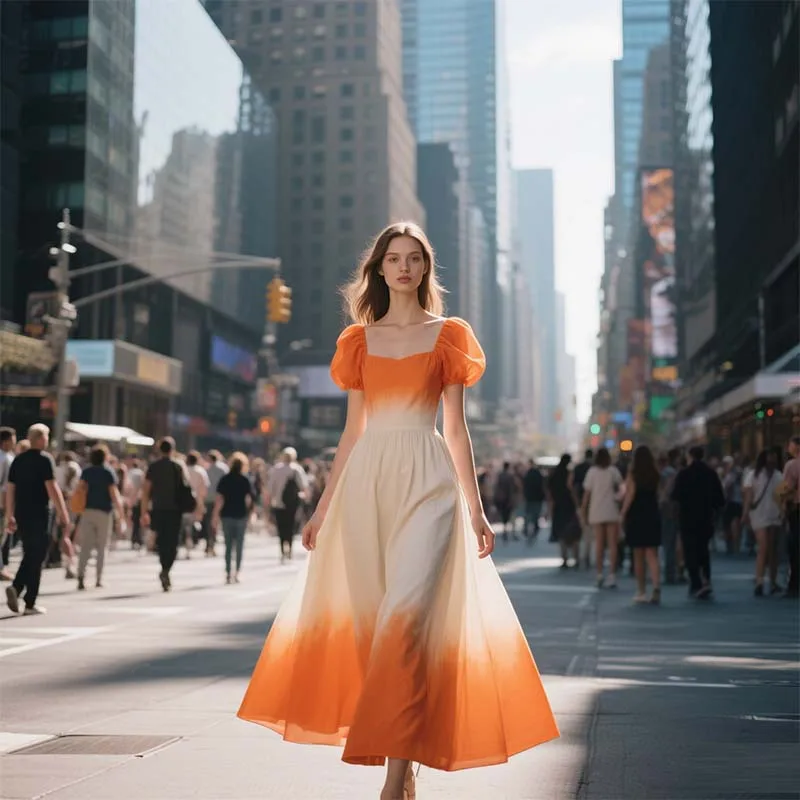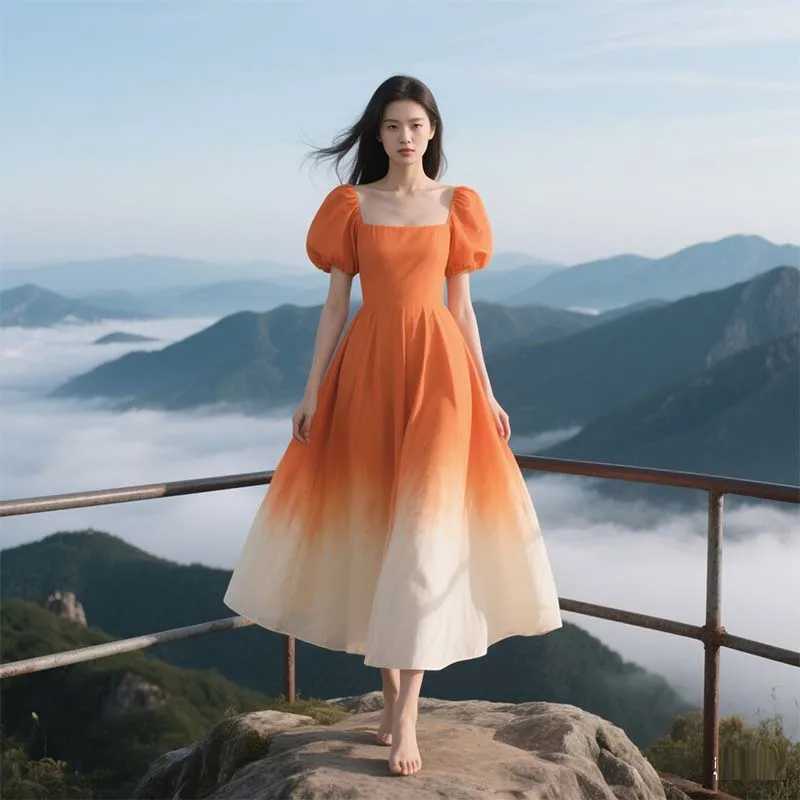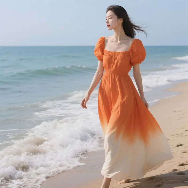 Factory Wholesale Square Collar Puff Sleeve Summer Apparel Women Elegant Casual Color Blocking Dresses for Party Daily Use