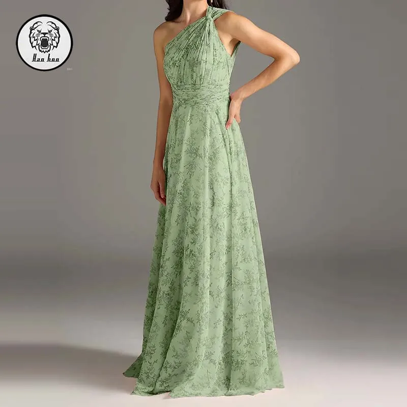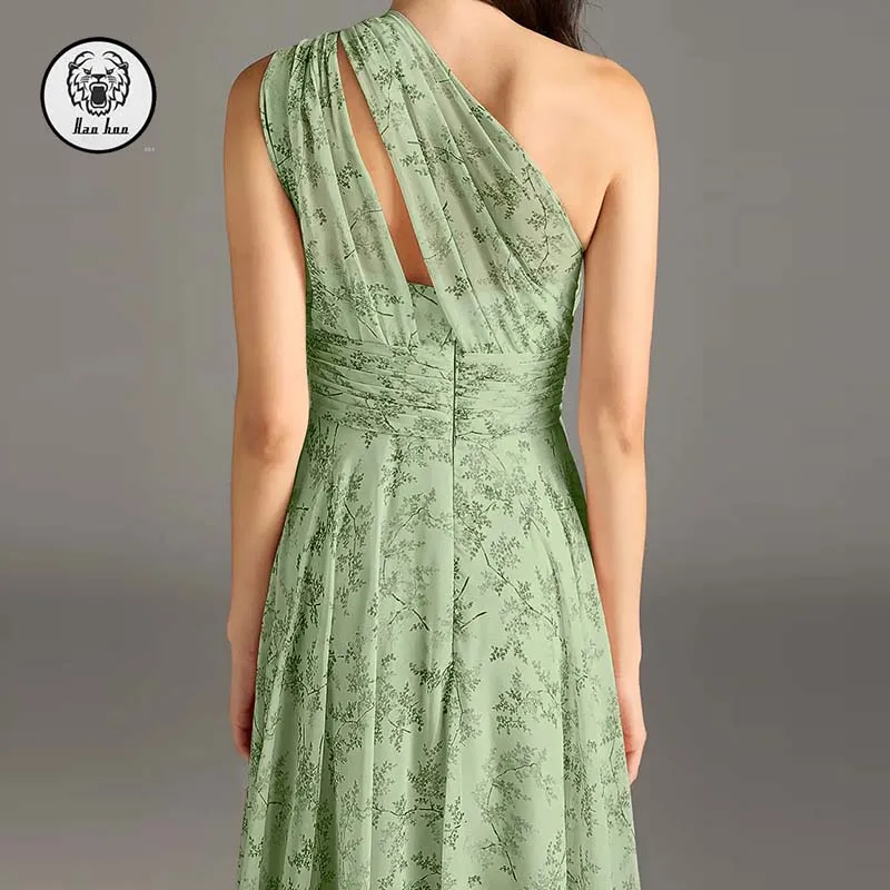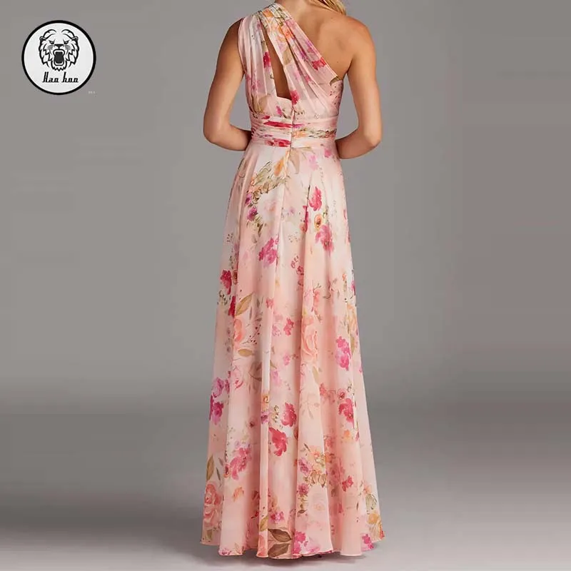 Abstract Watercolor Floral A-Line One Shoulder Chiffon Summer Dress Women Elegant Casual Bodycon Sexy Dresses