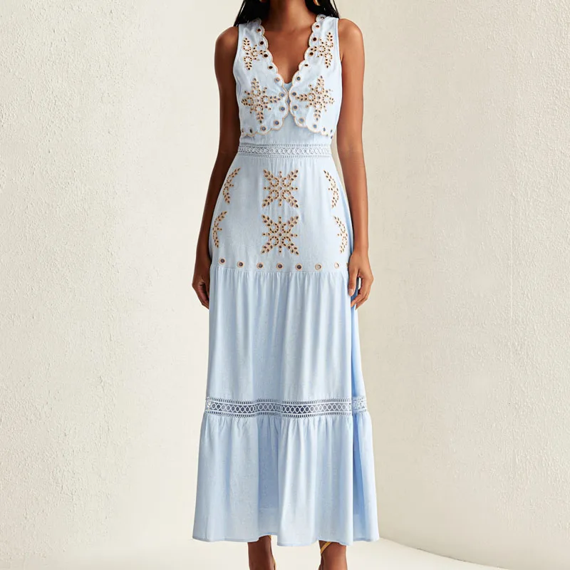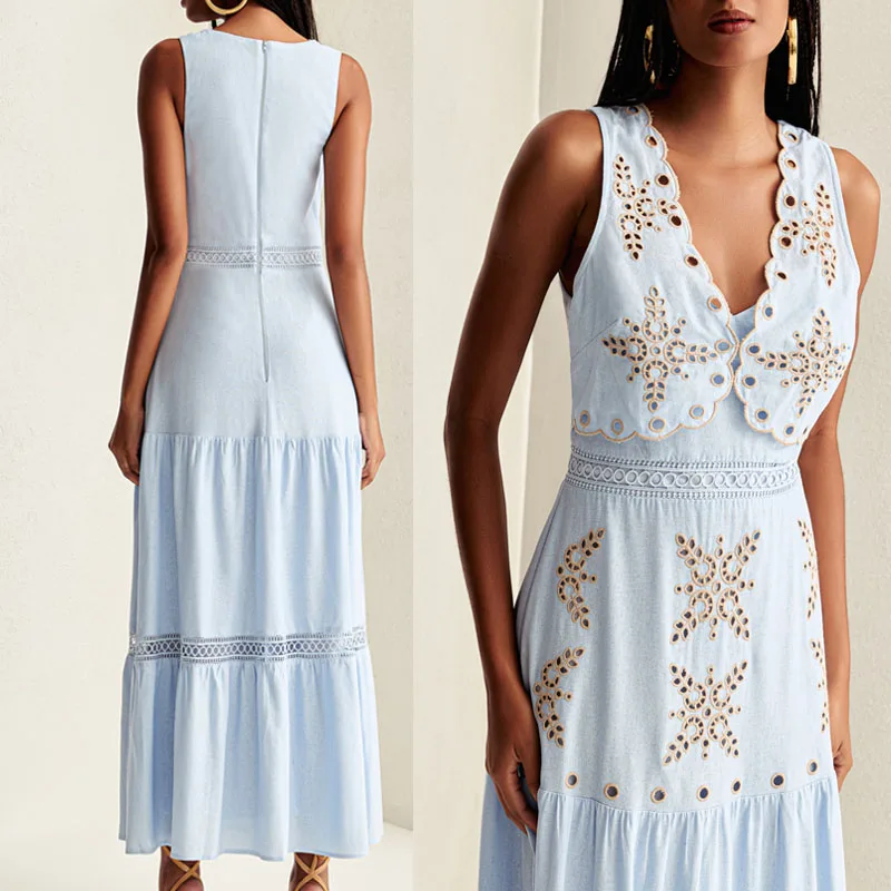 New arrival Design Puff Sleeve 3D Floral Casual Summer Clothing Pink Women Elegant Maxi Dresses