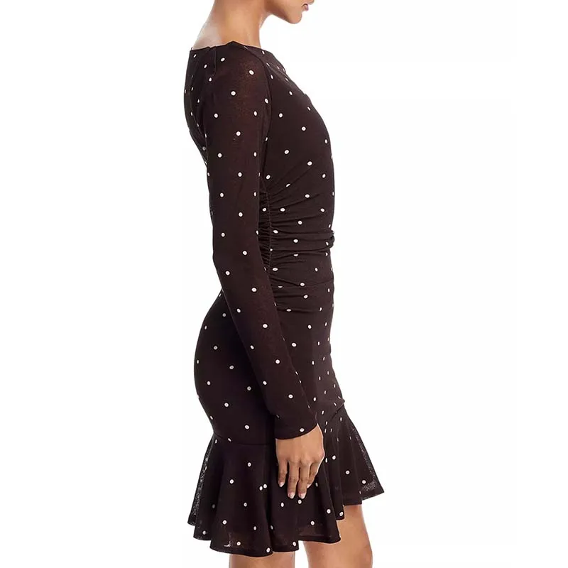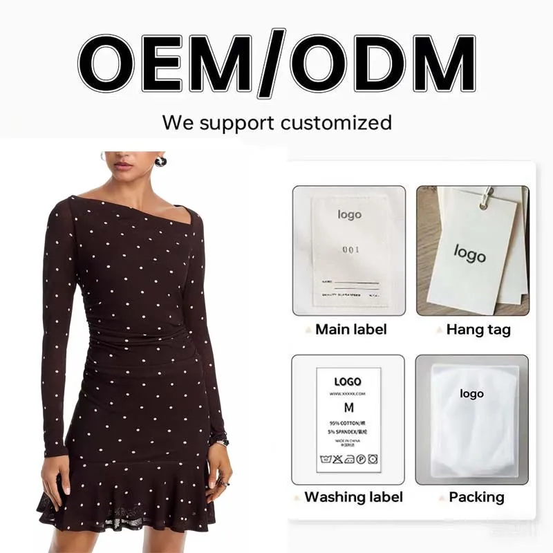 Custom Lady Party Dress A-Line Long Sleeve Wrap Mesh Ruffled Hem Dot Print Sexy Mini Fit Dress Women's Dresses
