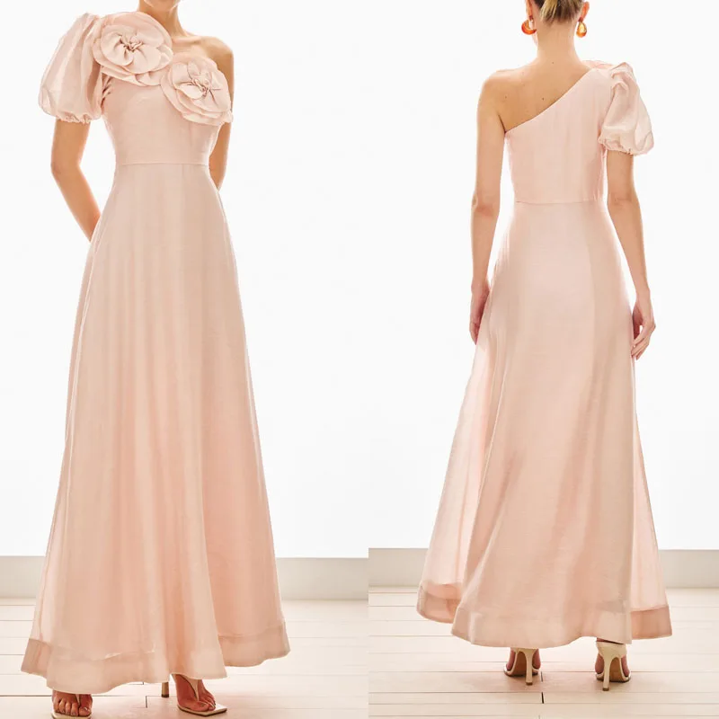Custom Latest Design Puff Sleeve 3D Floral Casual Summer Clothing Pink Women Elegant Maxi Dresses
