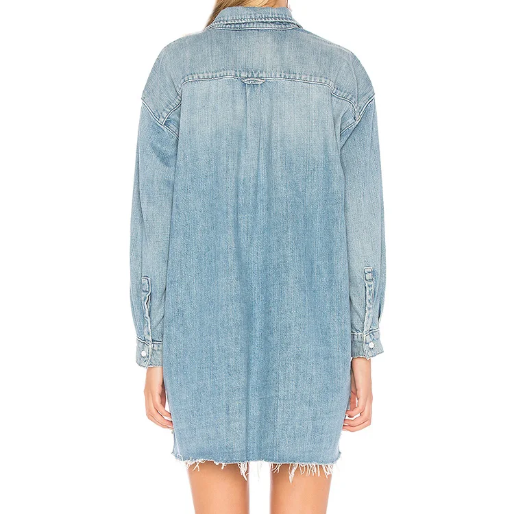 Hot Selling Women's Long Sleeve Button Front Pockets Oversized Denim Shirt Dress Casual Breathable Solid Dress