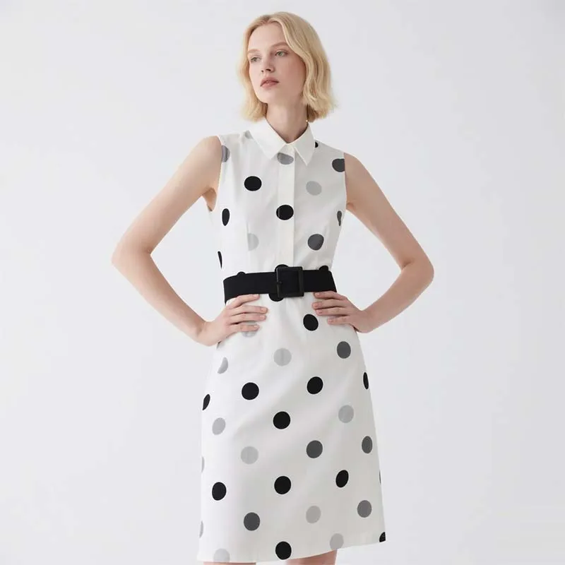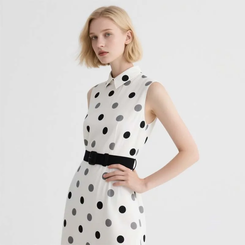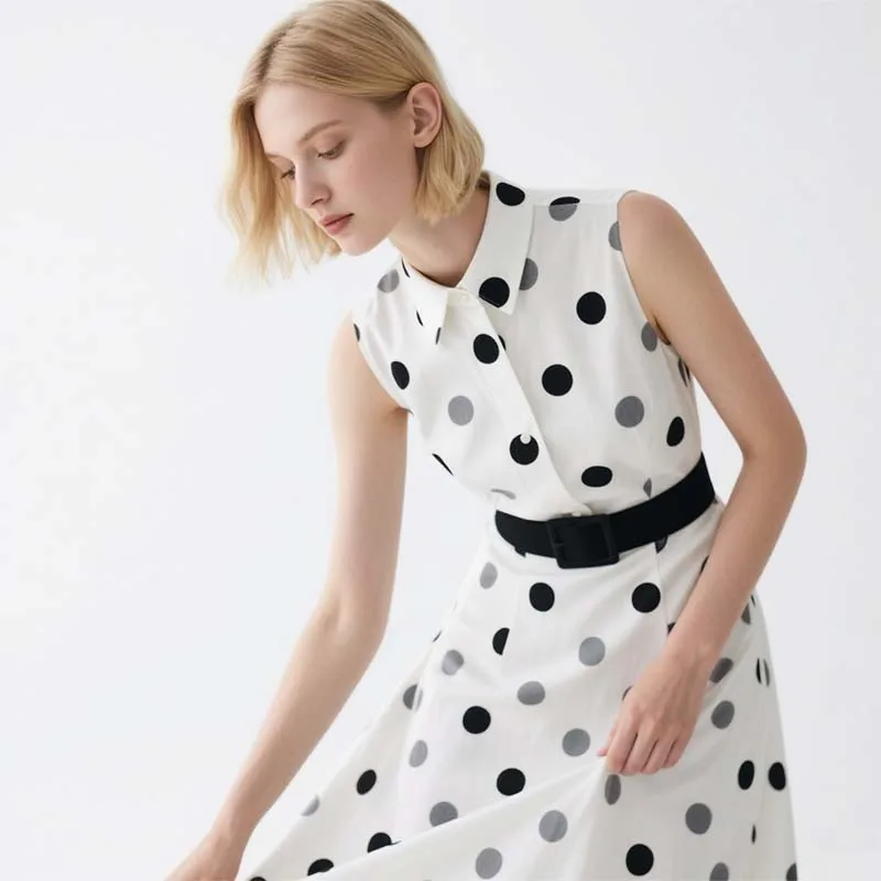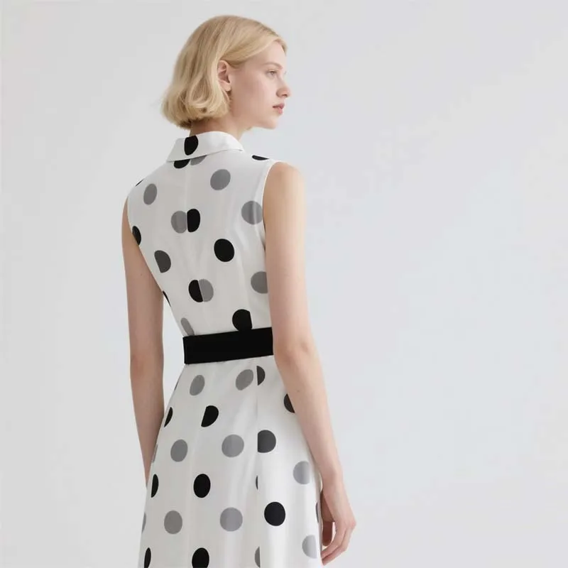 Elegant Women's Midi Sleeveless Dress with Dotted Digital Painting Casual Black Waistband for Summer and Autumn Seasons