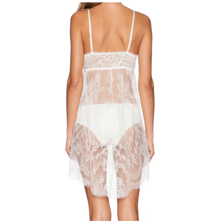 Custom Women's Floral Lace Chemise Transparent Sexy Adjustable Shoulder Straps Elastic Waist Mesh for Summer Spring Pajamas