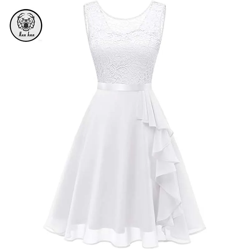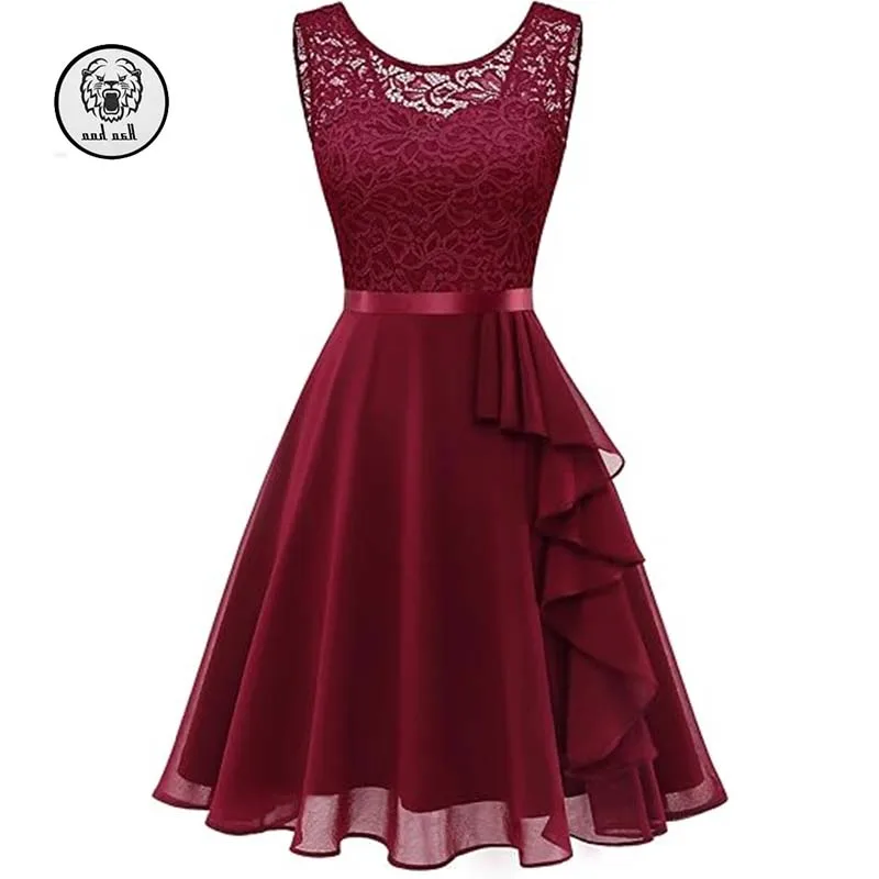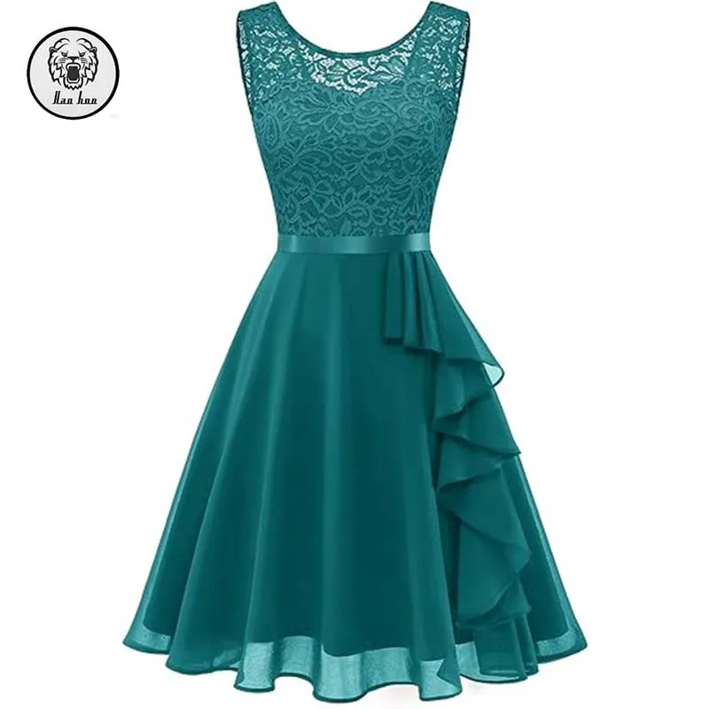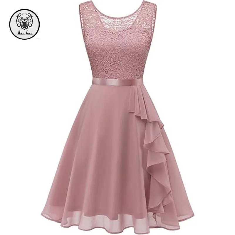 A-line Sleeveless Round Neckline Dress Women's Elegant Floral Lace Ruffle Evening Formal Wedding Guest Party Maxi Dress