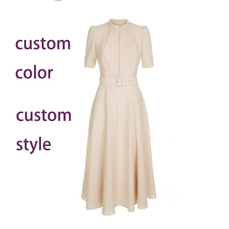 Eco-Friendly Crepe Dress Elegant Short Sleeve Midi Length Anti-Wrinkle Washable for Summer Vacation Office Daily Use ODM