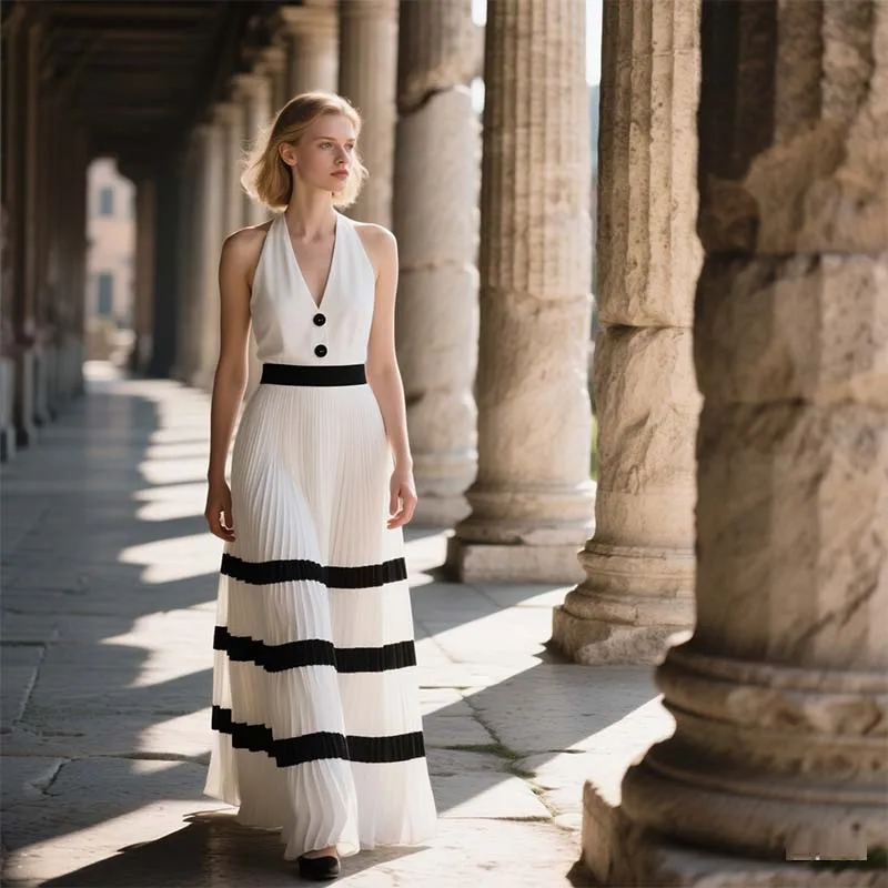 2026 Women's Oversized Hem Dress Simple Elegant New Fashion Zipper Vintage Contrast Color Worsted Fabric for Summer