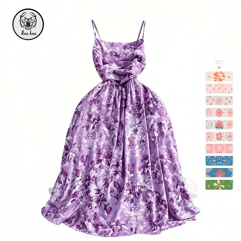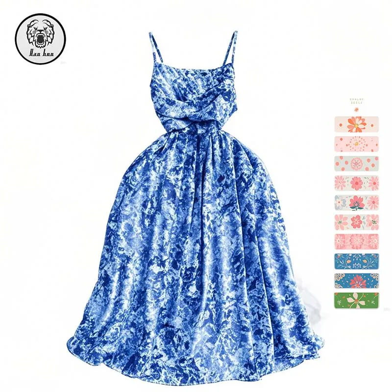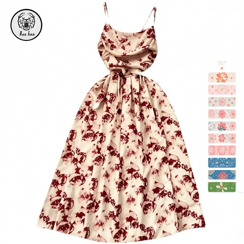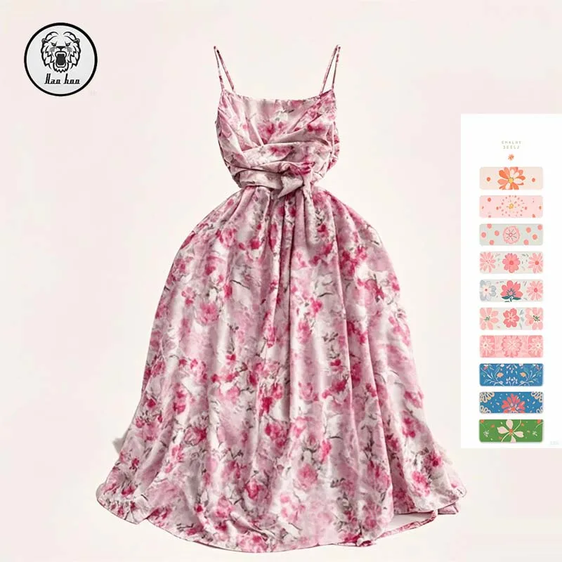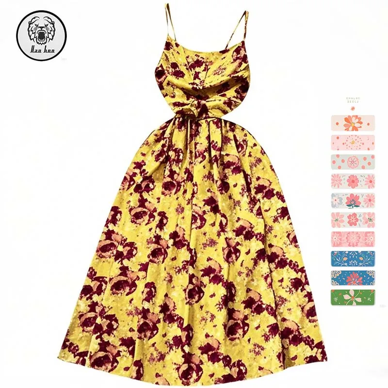 New Arrival Summer Dress Seaside Holiday Bustier Floral Halter A-Line Sleeveless Backless Empire Waist Casual Digital Washable