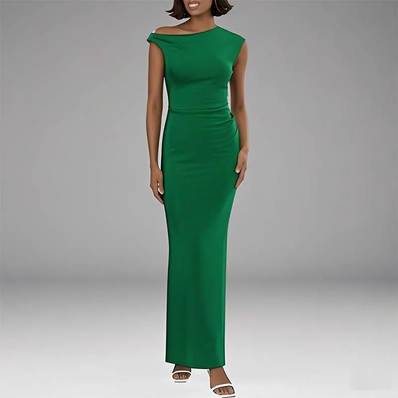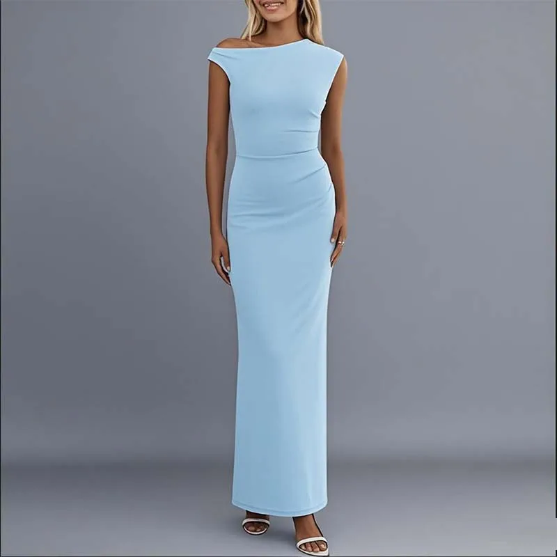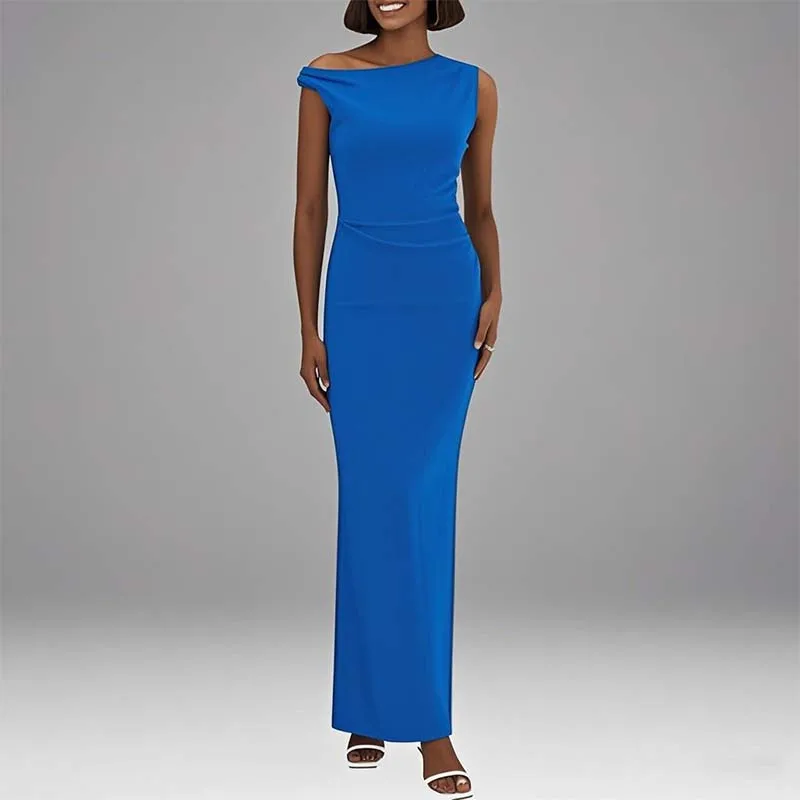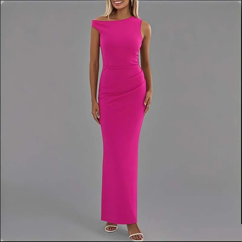 2026 Women's Summer Formal Maxi Sleeveless One Shoulder Bodycon Ruched Long Floor-Length Cocktail Wedding Guest Dress Ball Gown