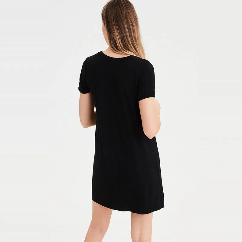 Women's Casual Solid Crew Neck Mini Dress Breathable Chiffon Viscose Short Sleeve Loose Silhouette Natural Waistline