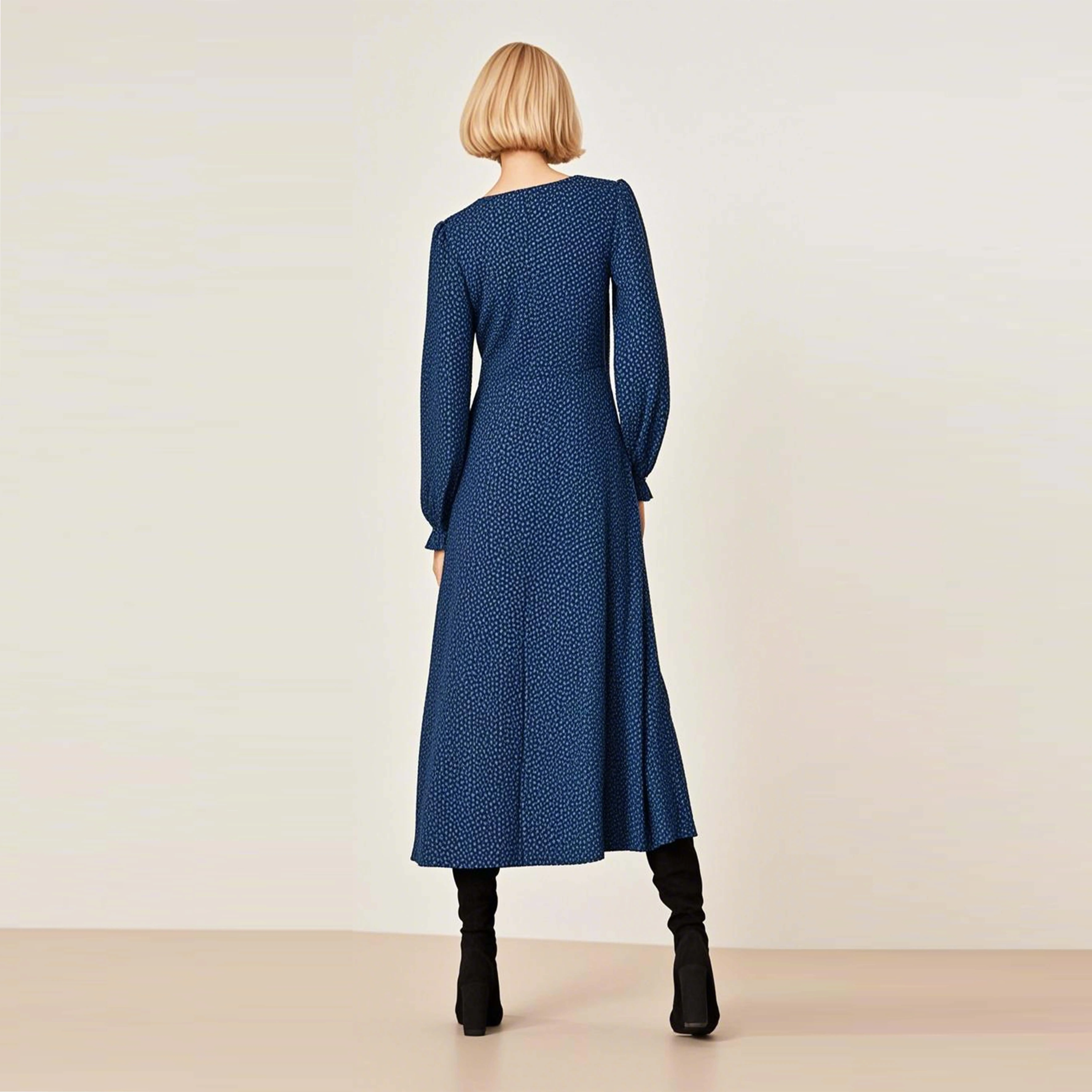 NEW 2026 Summer Sweet V-Neck Long Sleeve Maxi Dress with High Waist Loose Fit Breathable Fabric-Elegant & Casual