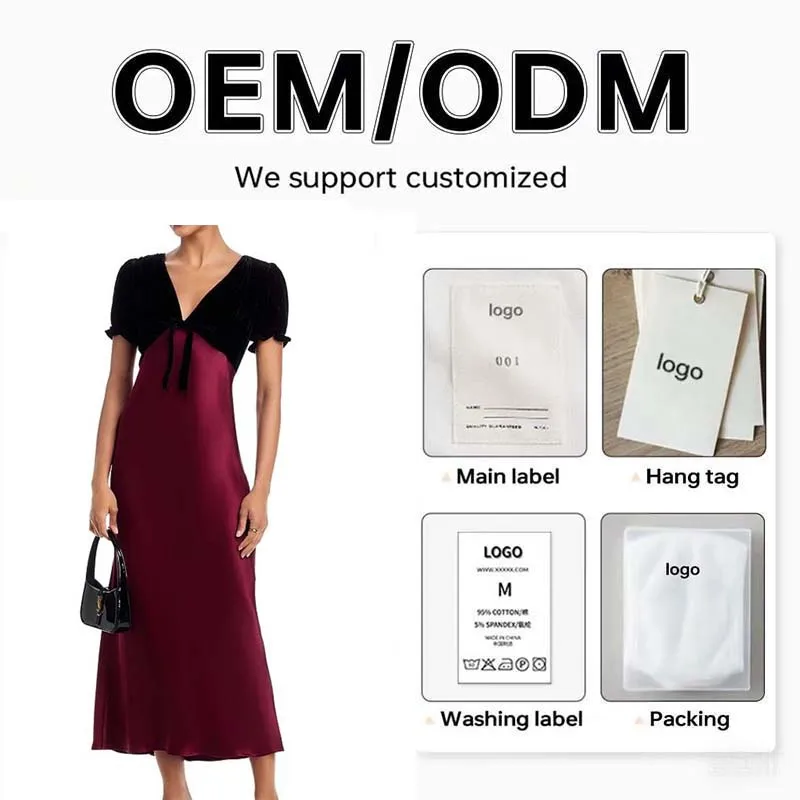 Custom Elegant Stylish Evening Party Velvet Shrug-style & Satin Skirt Short Sleeve Midi Dress Women's Dress