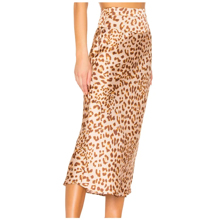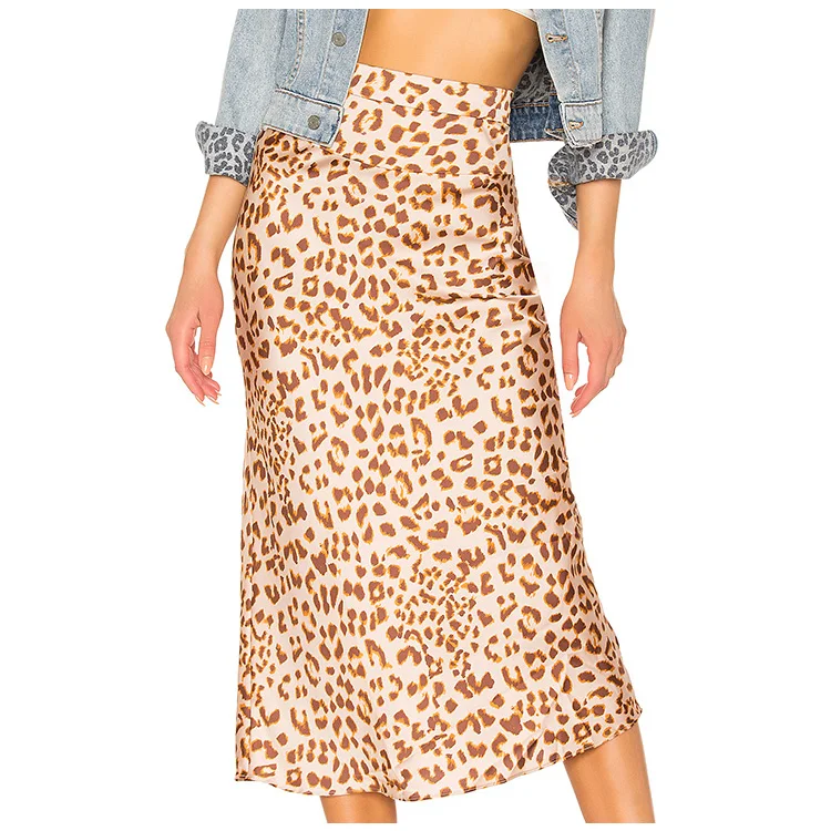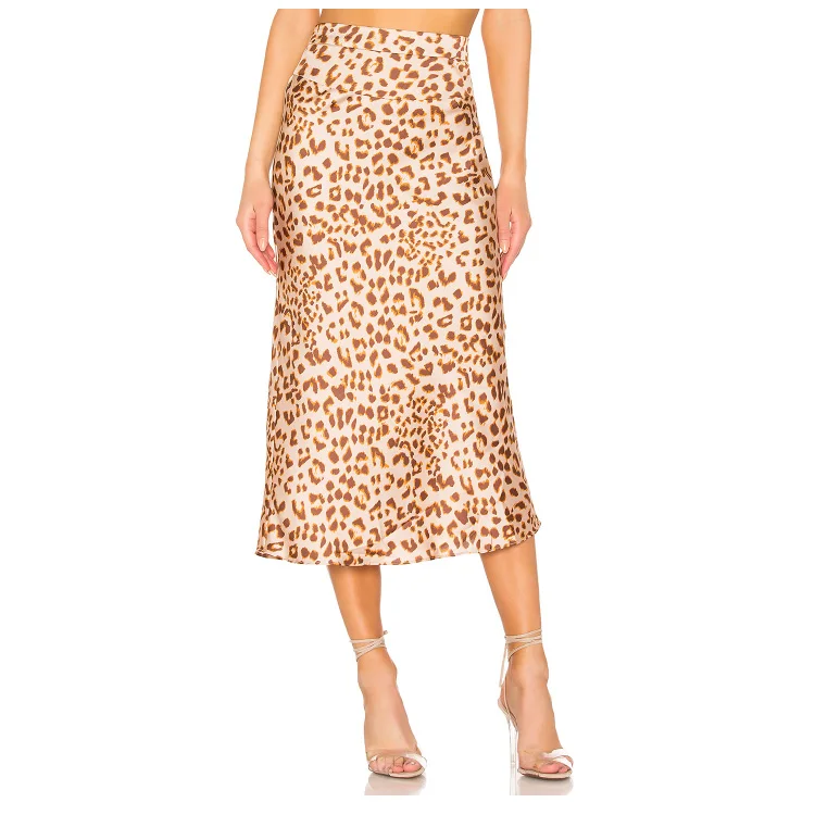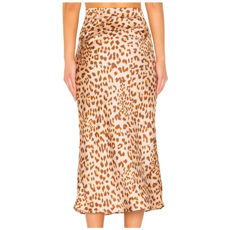 Women's Vintage Style Long Satin Skirt Leopard Print Elegant Empire Waistline Breathable Elegant Vintage Women's Satin Skirt