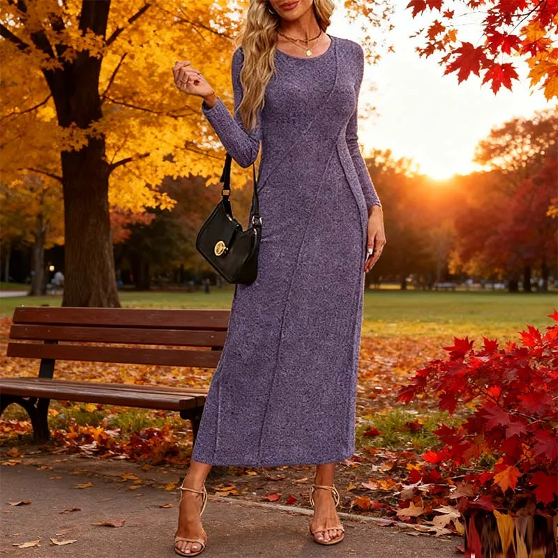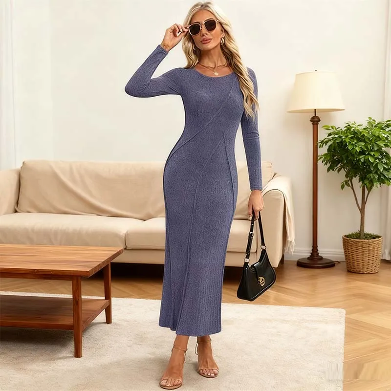 Womens 2026 Fall Winter Long Sleeve Ribbed Knit Sweater Maxi Dress Elegant Bodycon Wedding Guest Long Dresses