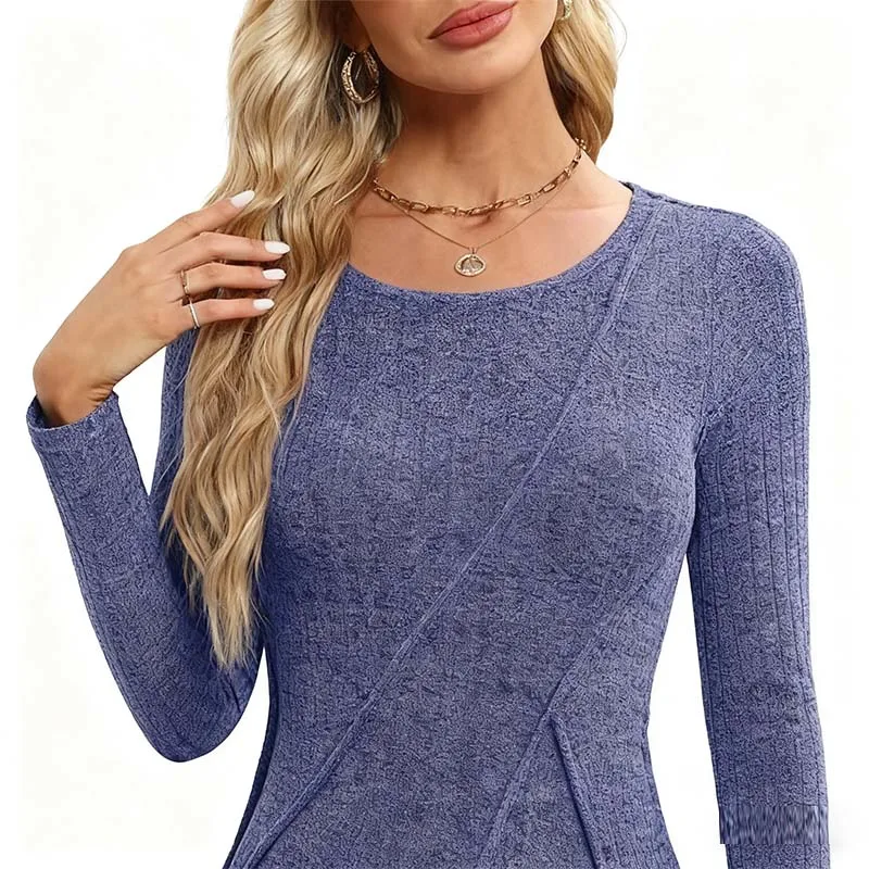 ZYHT 21541 Wholesale Crew Neck High Waist Casual Dresses Elegant Lace Velvet Mermaid Hem Ruched Long Sleeve Dresses for Women