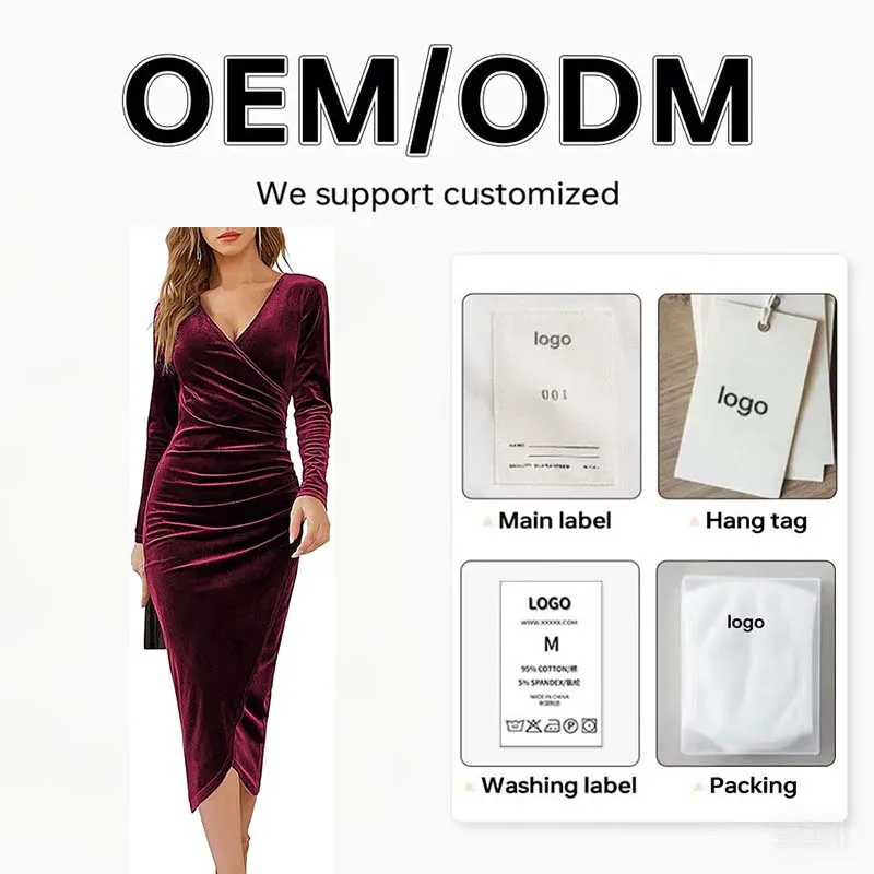 Womens Wrap V-Neck Dress Velvet Elegant Long Sleeve Mermaid Cocktail Dress Evening Gowns Long Ruched Party Dresses