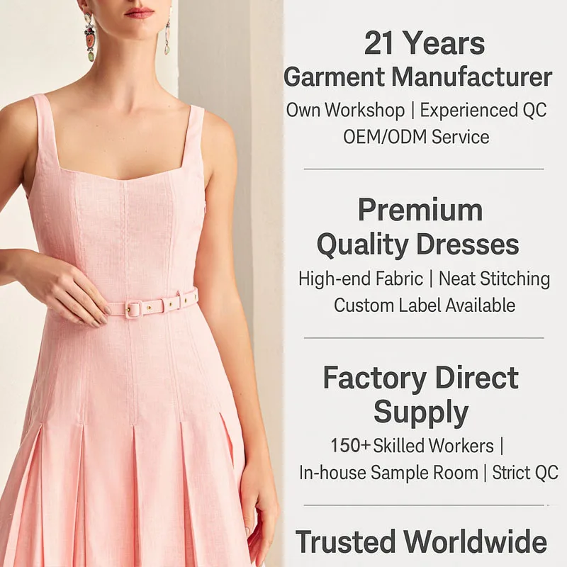 Custom New Design Summer Elegant Sleeveless Square Neck Women Elegant Casual Maxi Dresses