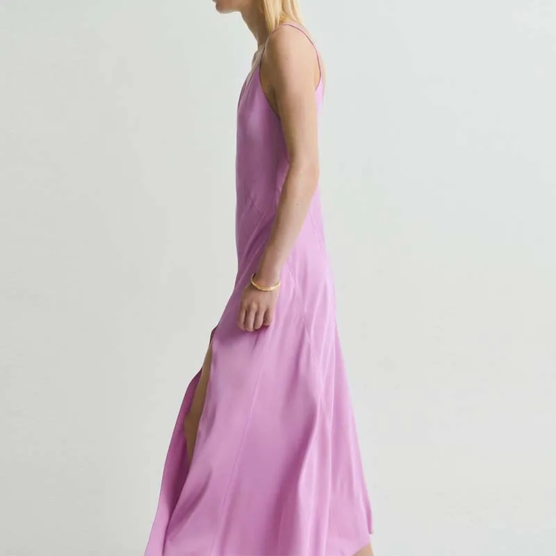 Custom Elegant Stylish Evening Party Satin Asymmetrical Sleeveless With Adjustment Strap Midi Slit Dress Women's Dress