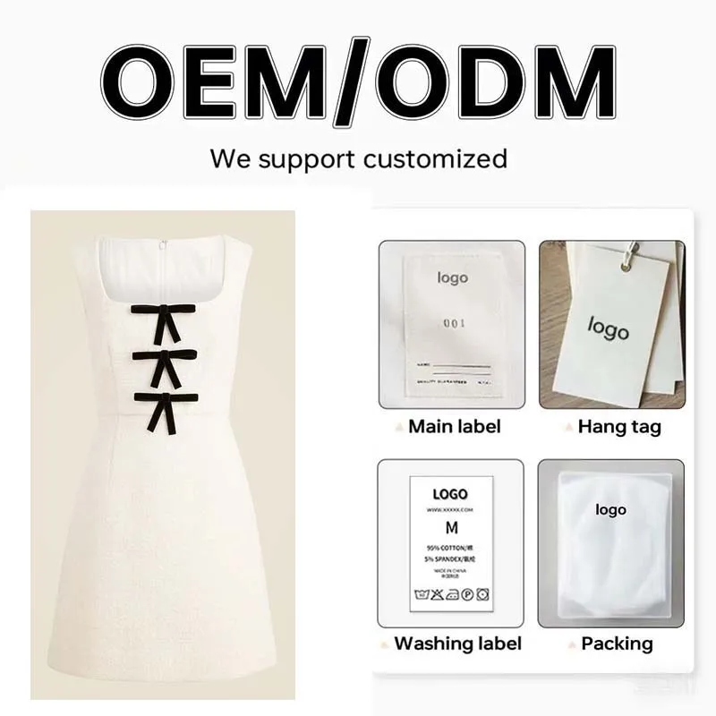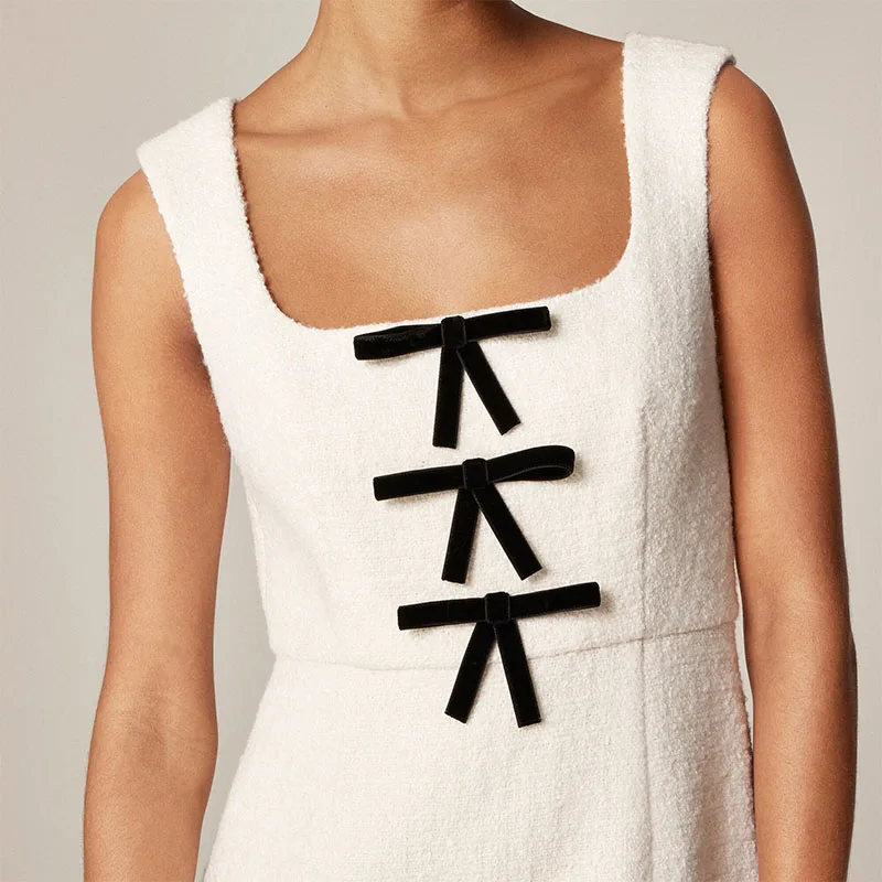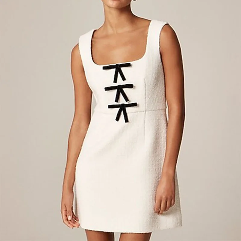 Custom Sweet-inspired Stylish Tweed With Velvet Bow Solid Sleeveless Mini Elegant Formal Women's Dress