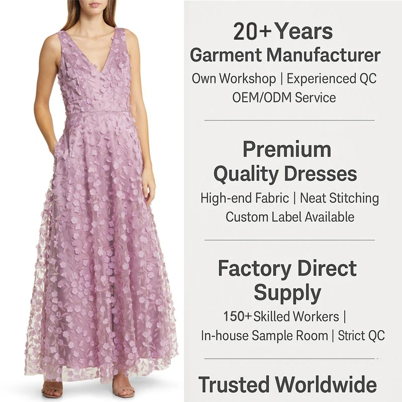 Elegant Exquisite Lavender Floral Embroidered Evening Gown Sweet Style Woven Cloth Lace Sustainable Beach Vacation