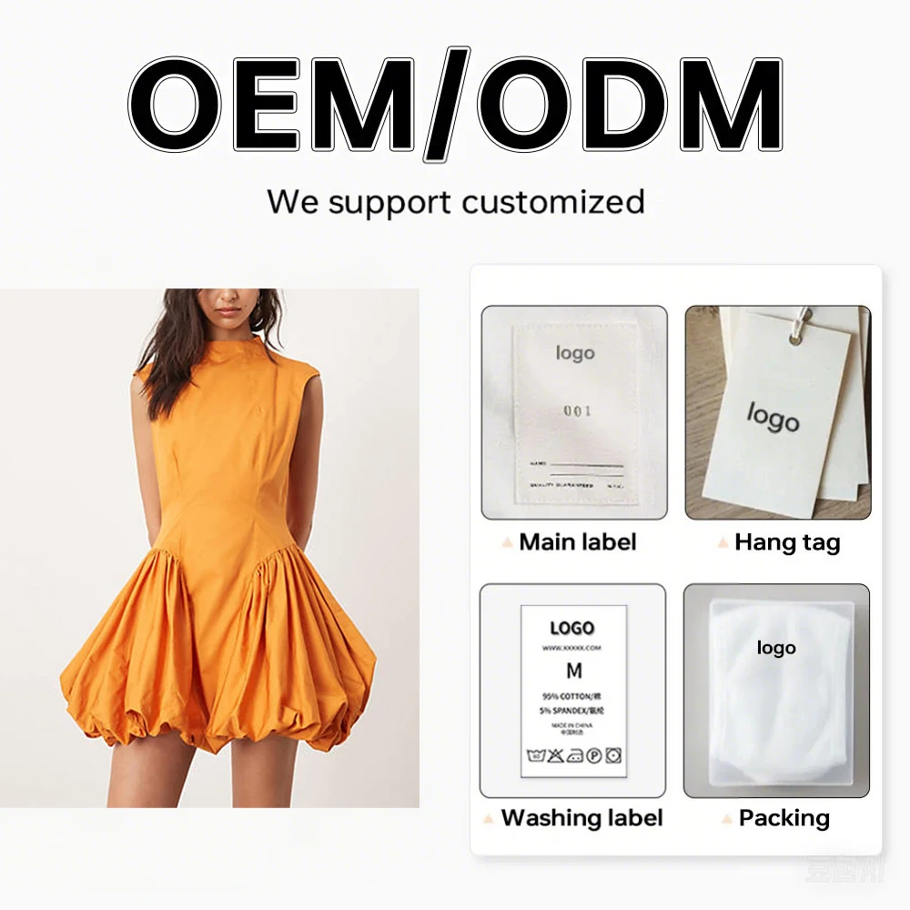 Women's for Mango Orange Mini Dress O Neck with Drop Waist and Puffball Detail Casual Style