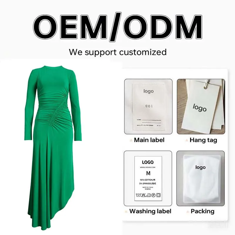 ZYHT 73849 European Wholesale Fashion Casual One Shoulder Ruched Maxi Dress Side Slit Pleated Long Sleeve Dresses for Women