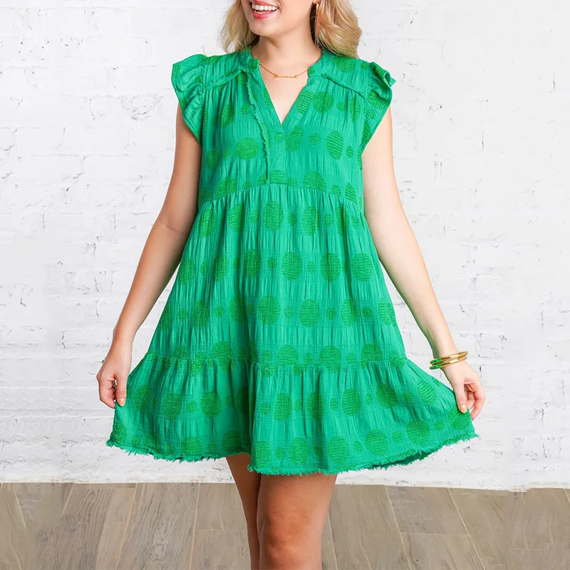 Green Cotton Gauze Mini Dress A-line Emily Dress