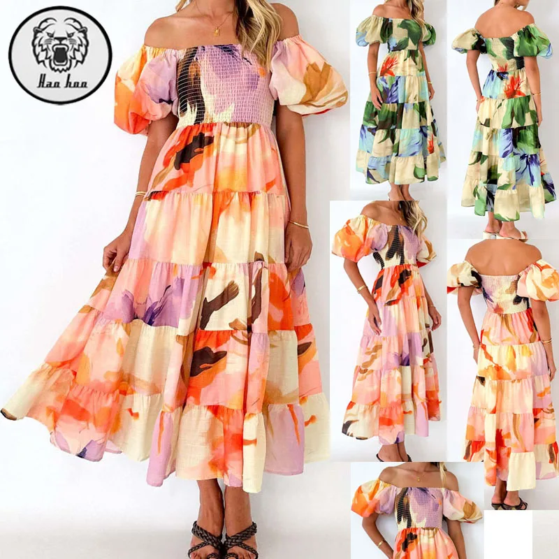 Factory Custom Summer Off Shoulder Printed Clothing Women Casual Sexy Elegant Maxi Dresses