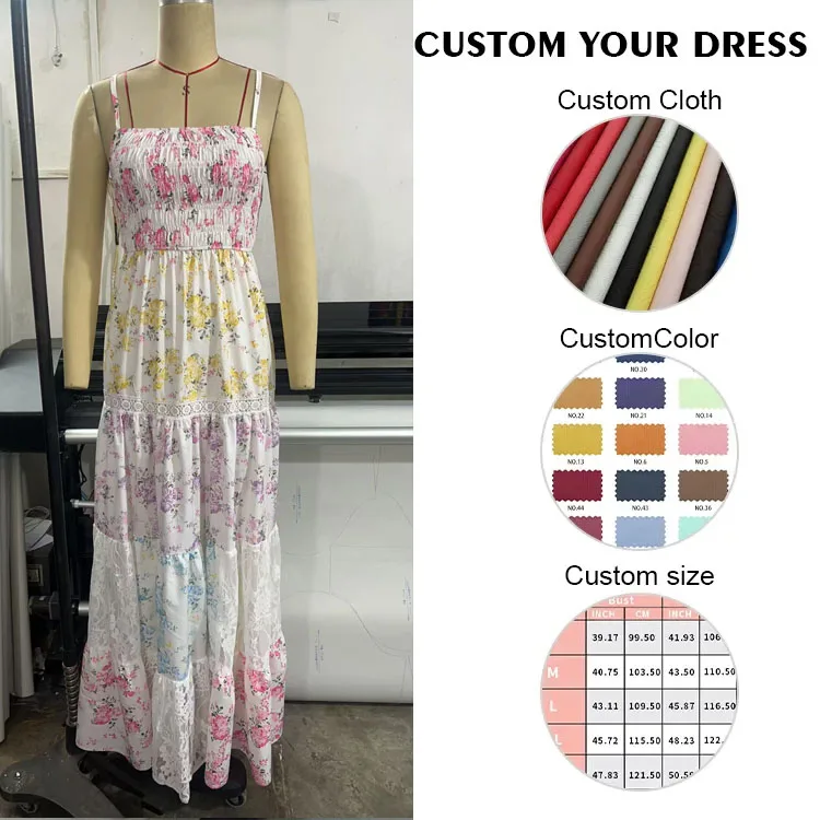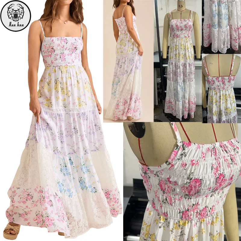 Wholesale Good Quality Shirred Floral Strapless Clothing Women Summer Casual Maxi Dresses