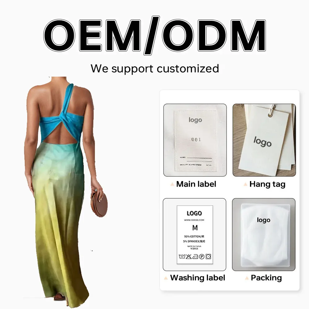 New Fashionable Spring Summer Wearing One Shoulder Slim Fit Backless Women Sexy Casual Stain Maxi Dresses