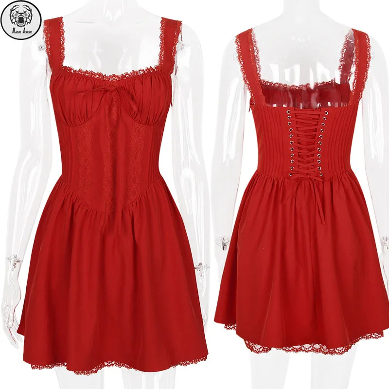 Custom High Quality Lace Trim Sleeveless Shirred Design Women Summer Casual Sexy Short Dresses