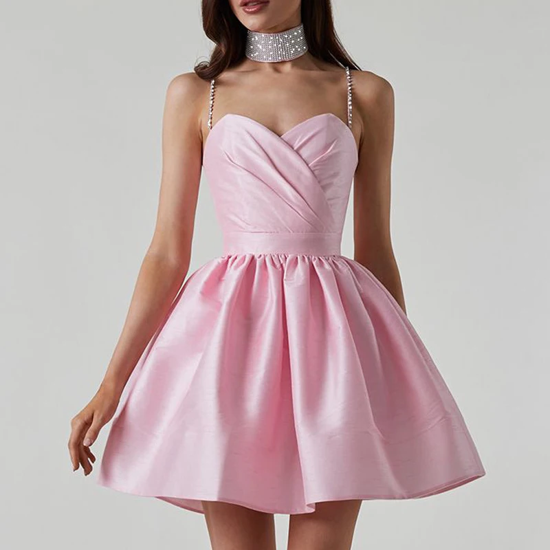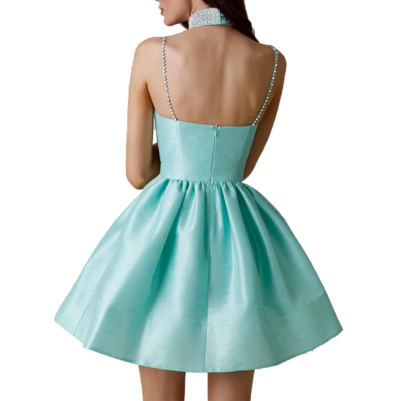 Custom Light Blue High Waist Rhinestone Collar Women Elegant Sexy Casual Evening Night Dresses