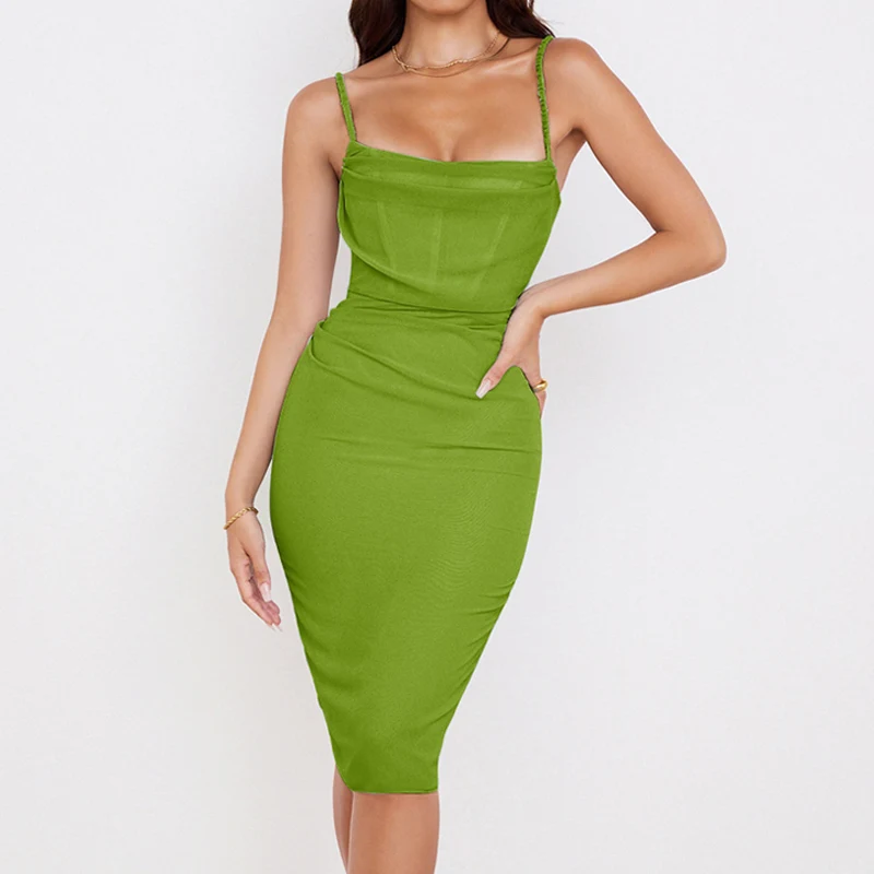 Manufacturer Wholesale Ladies Sleeveless Bodycon Shirred Garment Sexy Women Casual Soft Mesh Club Dresses