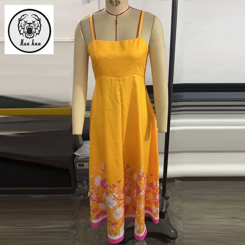 Manufacturers Wholesale Floral Printed Yellow Comfortable Clothes Women Summer Long Maxi Dresses
